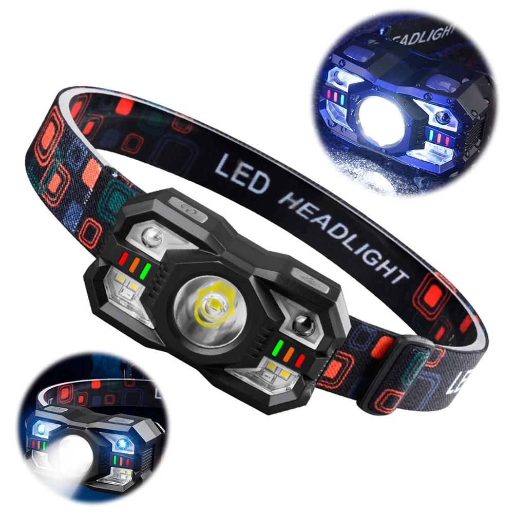 LED Induction Headlamp 5 Gears Super Bright Headlight 1200mAh Powerful Headlight Torch Power Display for Outdoor Camping Running