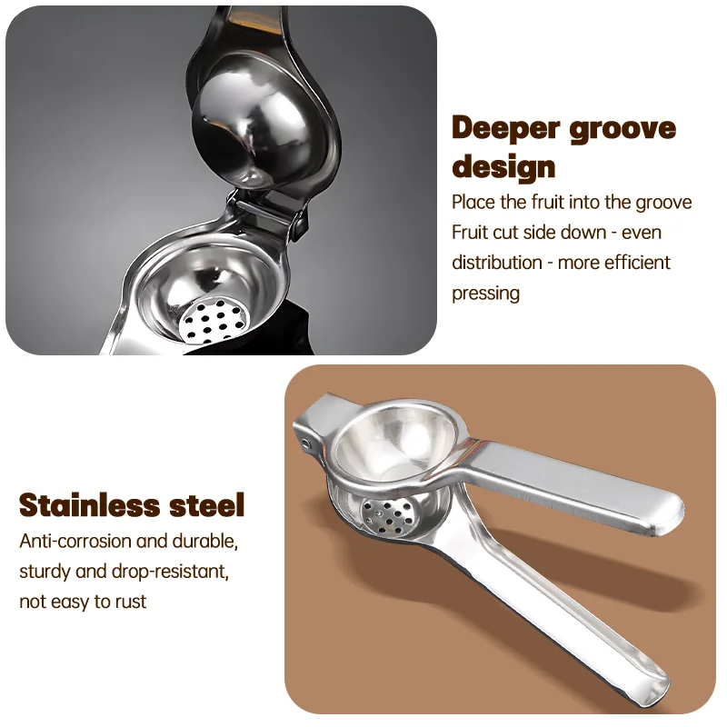 Durable and Long-Lasting: Made from high-quality stainless steel materials, our juice squeezer handheld is built to last. Lemon juicer hand sturdy construction can withstand the wear and tear of daily use, ensuring that lemon lime squeezer will be a reliable fruit juicer for years to come.
