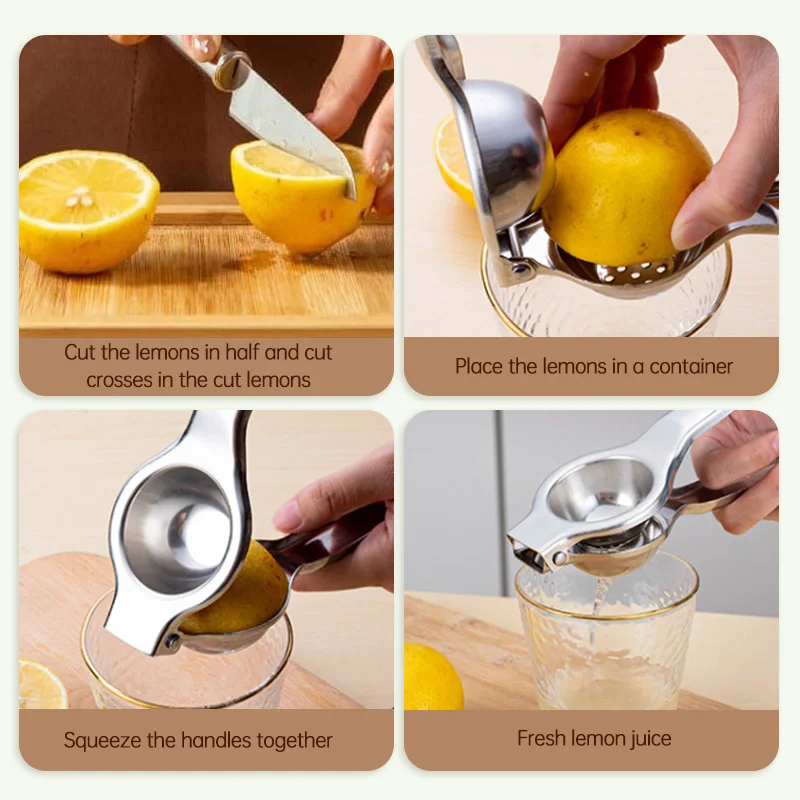 Easy to Use and Clean: Unlike a cold pressed juicer machine, our orange juicer manual is incredibly easy to use and clean. Simply place your fruit or vegetable in the juicer and squeeze the handles together. When you're done juicing, just rinse the stainless steel lemon squeezer under running water and lemon lime squeezer ready to use again.