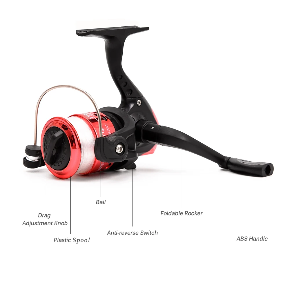 Fishing Reel: This deluxe spinning fishing reel is left and right hand interchangeable. It features durable metal spool, comfortable ABS folding handle and instant anti-reverse system. Line capacity (mm/m): 0.18/215, 0.20/175, 0.25/110.
