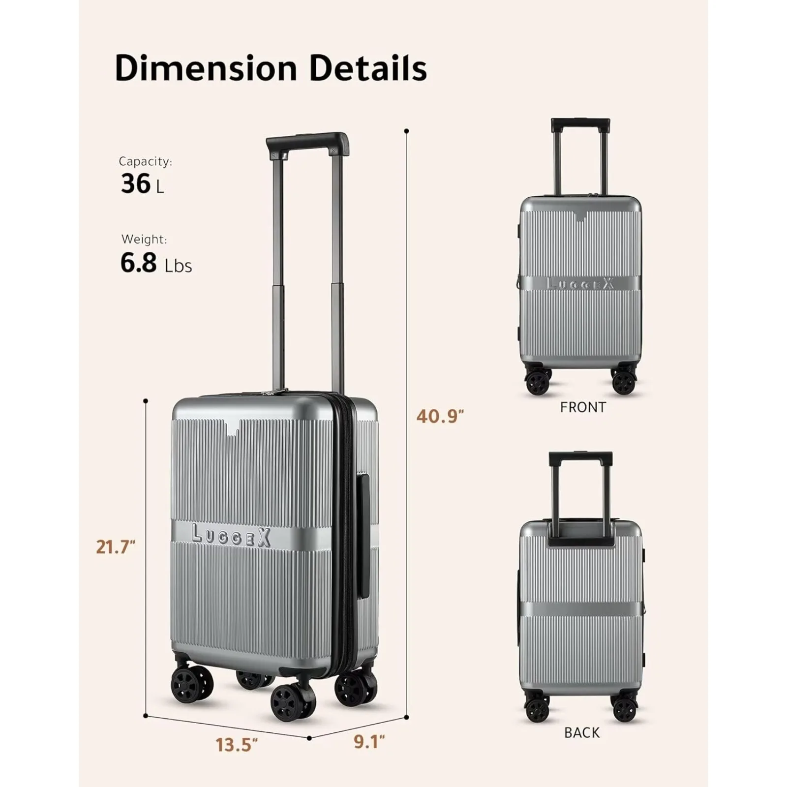LUGGEX Carry On Luggage 22x14x9 Airline Approved with Spinner Wheels – 100% PC Hard Shell Expandable Luggage – Effortless Travel
