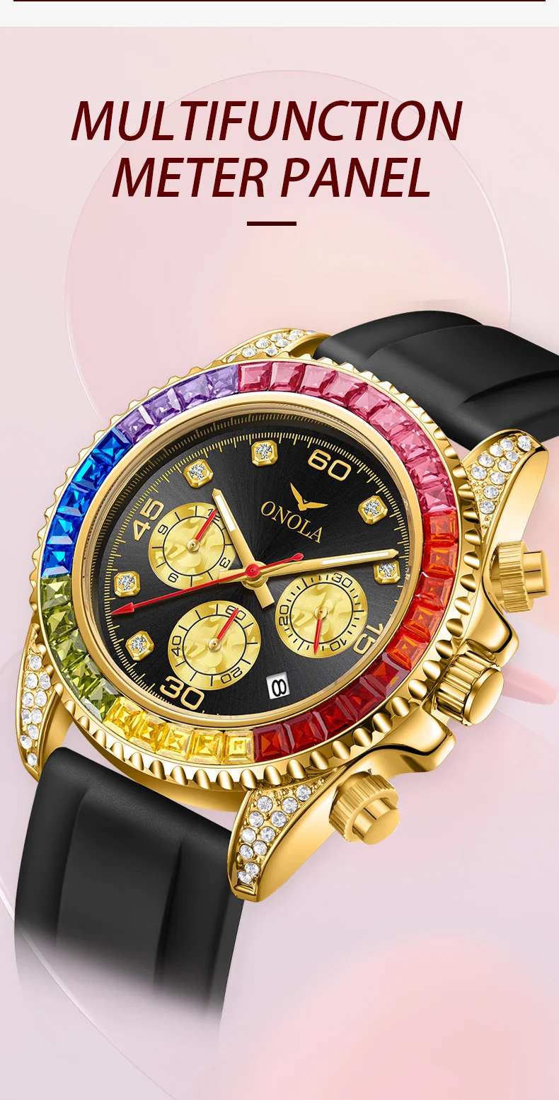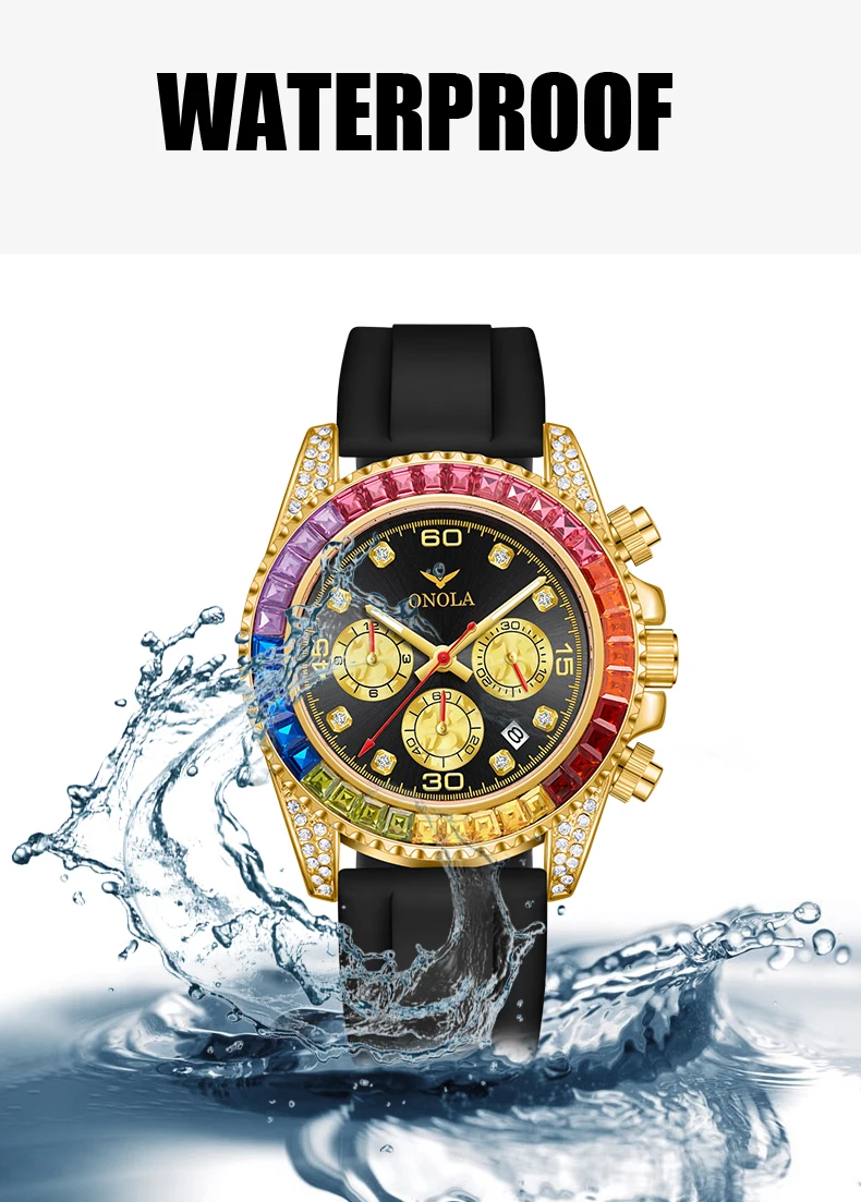 Home Jewelry and Watches Luxury Diamond Bezel Watch Men Business Fashion Chronograph Quartz Wristwatch Casual Rubber Strap Luminous Waterproof Clock 2024