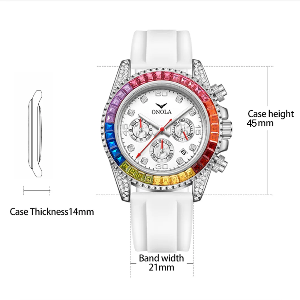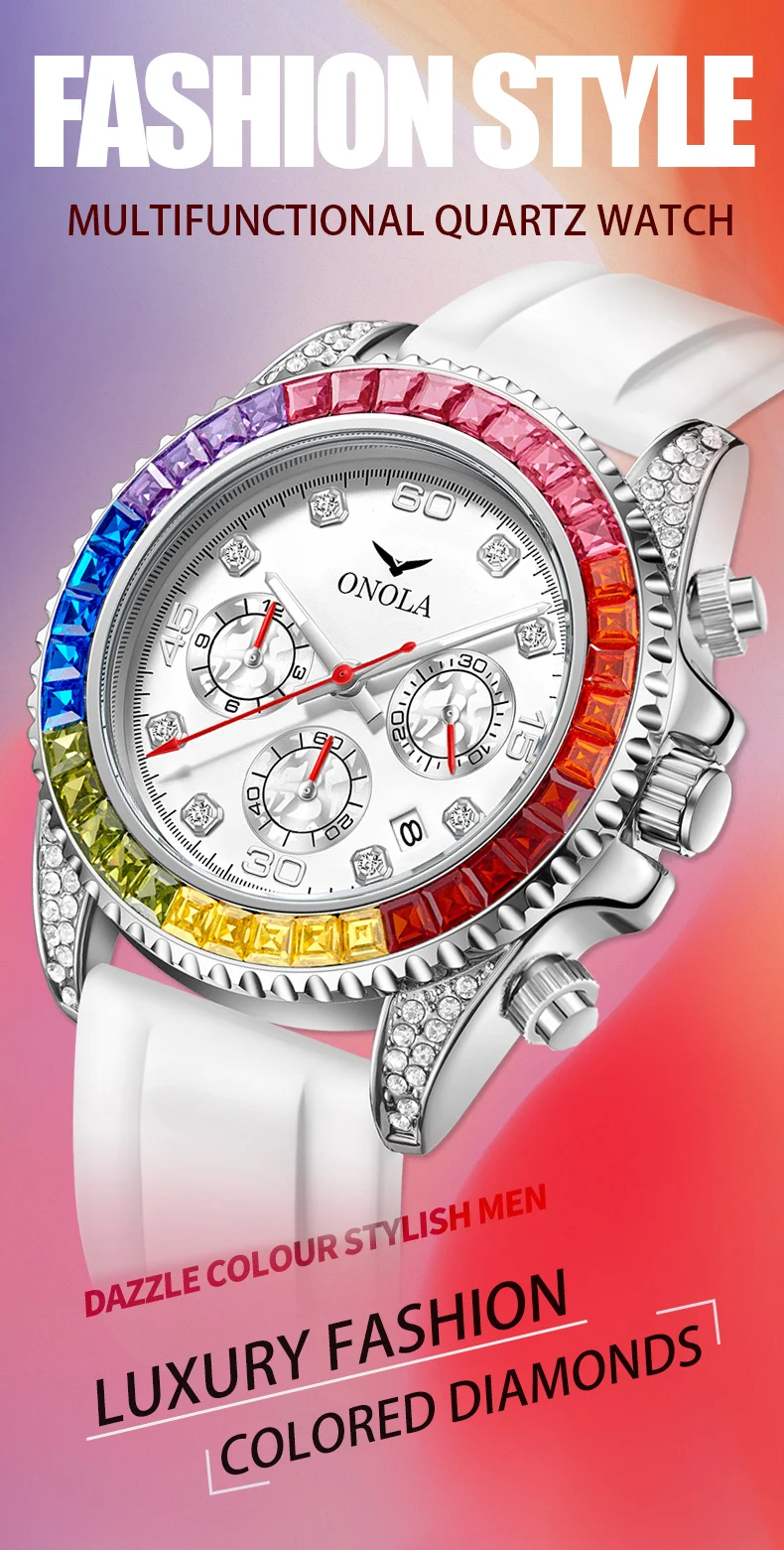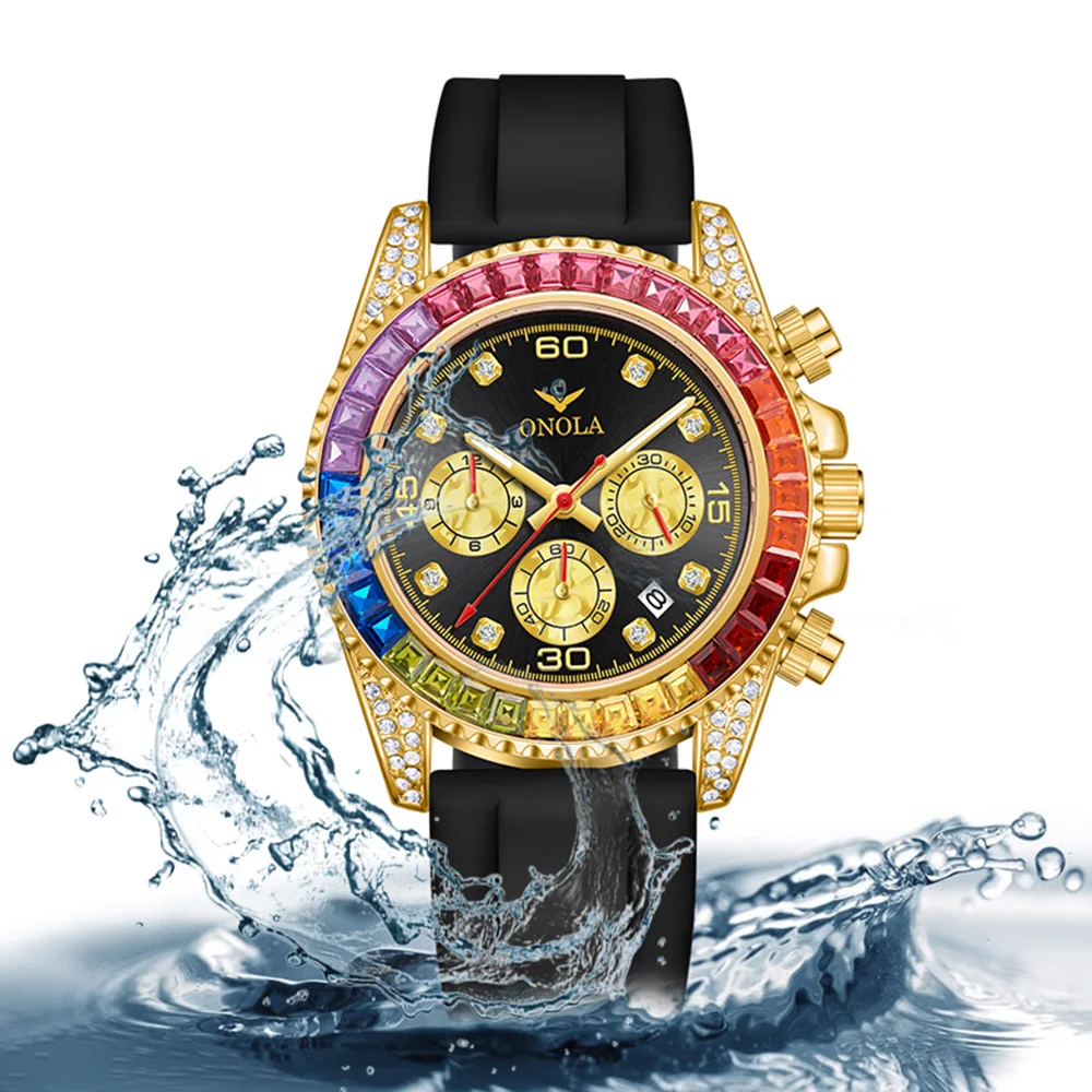 Luxury Diamond Bezel Watch Men Business Fashion Chronograph Quartz Wristwatch Casual Rubber Strap Luminous Waterproof Clock 2024