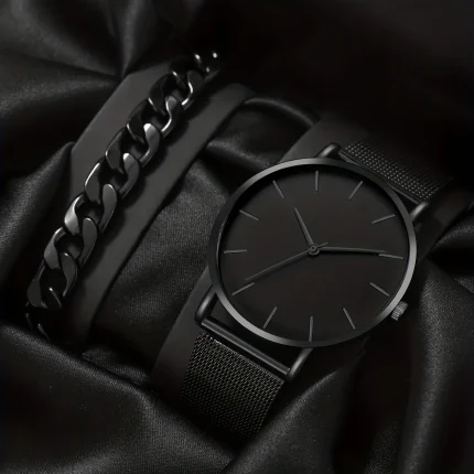 1pc Men's Stainless Steel Strap Charming Decorative Round Dial Quartz Watch & 1pc Bracelet For Everyday Use $15.67