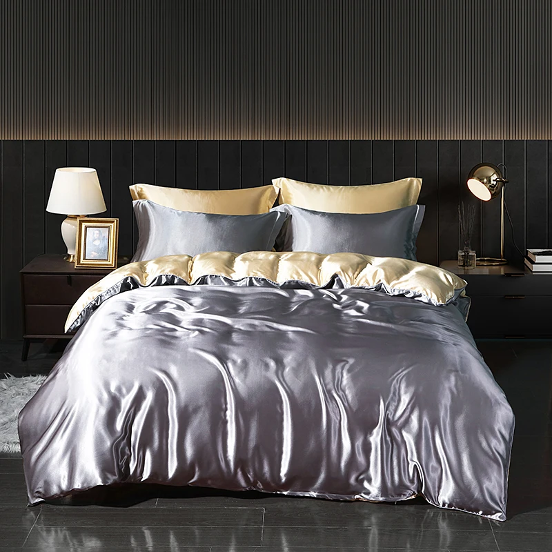 Luxury Satin Bedding Set With Fitted Sheet Duvet Cover High End Bedding Sets High Density Satin Solid Color Bedding