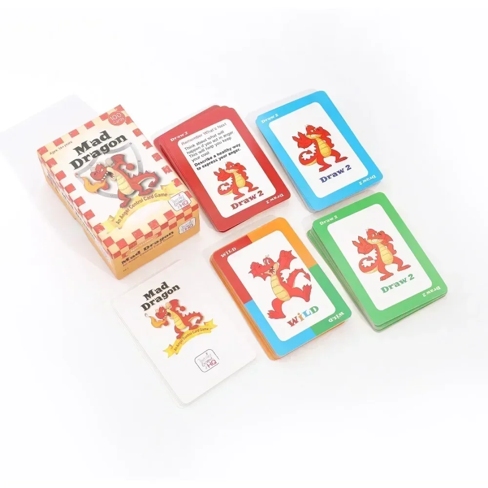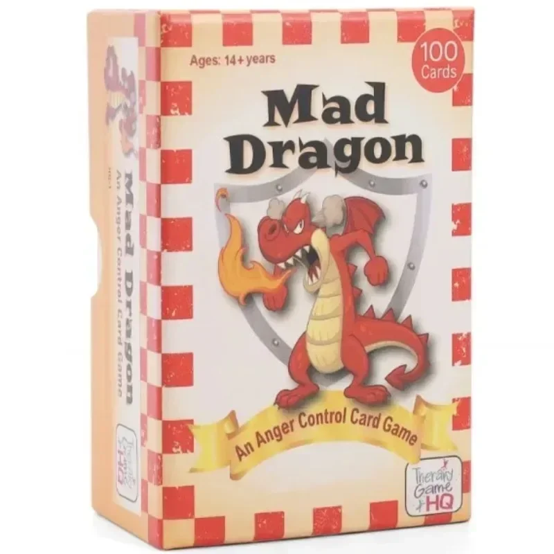 This fast-paced therapeutic card game helps children ages 6-12: Control their anger in the moment; Practice 12 effective anger management techniques; Understand what anger feels and looks like; Avoid anger-provoking situations; Express and understand their feelings; Identify anger cues; Learn that they have choices about how to express anger. Mad Dragon plays like the popular game UNO. Players race to get rid of their cards while learning anger control skills. Fun and effective,  instructions, and tips for taming anger. For 2 to 8 players.