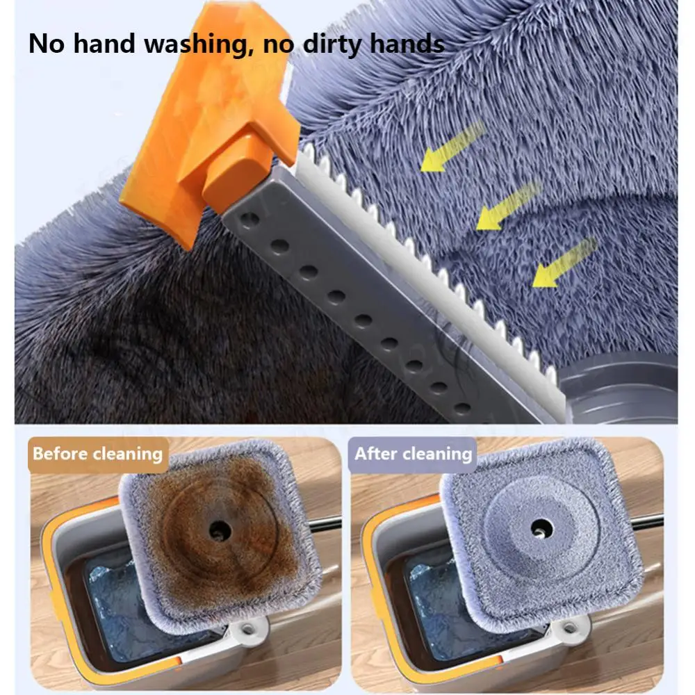 2. Self-Cleaning and Self-Wringing: The highlight of our square mop is its self-cleaning system and dirty water separation mechanism. Simply dip the dirty mop head into the self-cleaning system and watch it separate and remove the dirt. Then, the wringing mechanism extracts excess water, preparing the mop for the next cleaning task. This unique feature not only saves your time and energy but also ensures a more hygienic cleaning process.