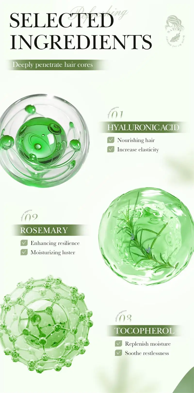 - Function 2: Soothing scalp,nourish hair roots Hair follicle nourishing,promote hair growth Item