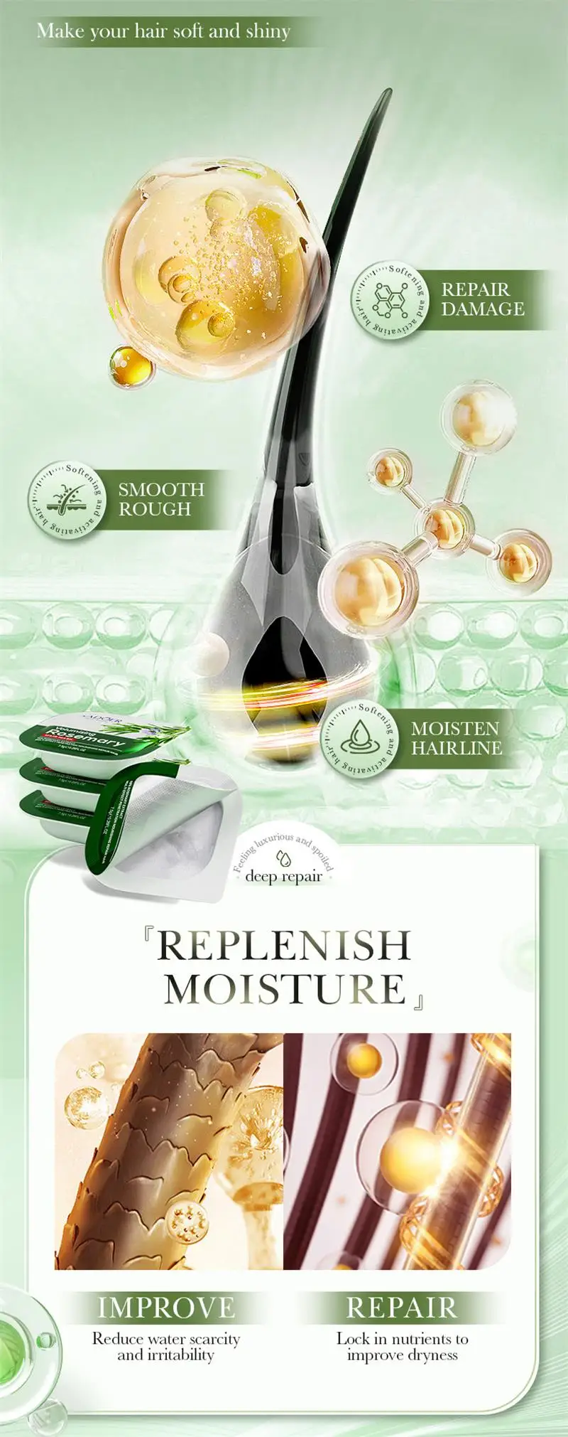 - Function 1: Repair damaged hair, smooth,moisturizing,Silky,Shiny
