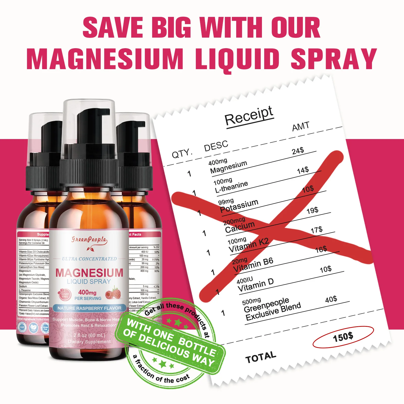 • Usage And Dosage: 1 drip(1ML) of magnesium liquid directly into mouth