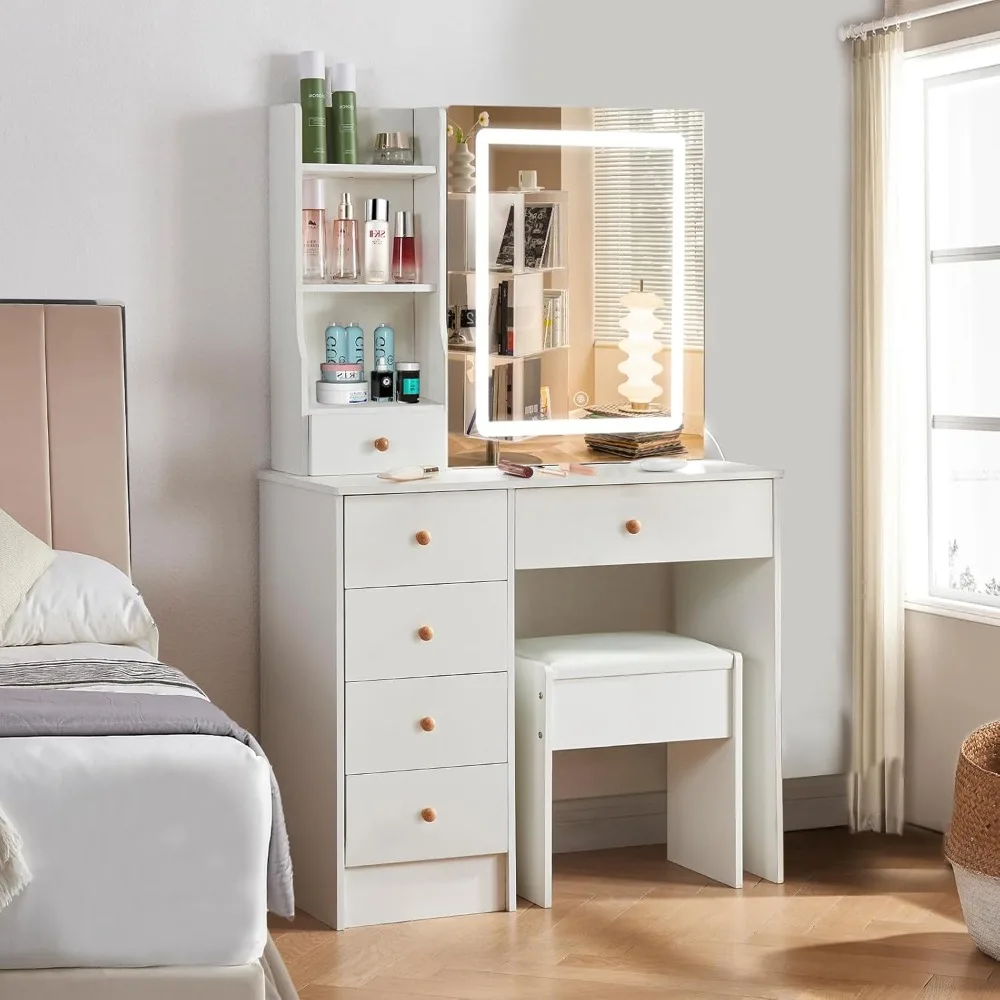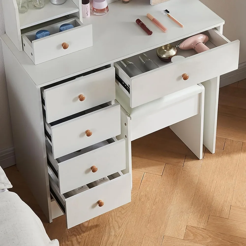 - 【Suitable Storage Capacity】The vanity table set contains 5 well size drawers,side storage shelves and hidden shelves offers plenty of space to organize for all your makeup accessorie