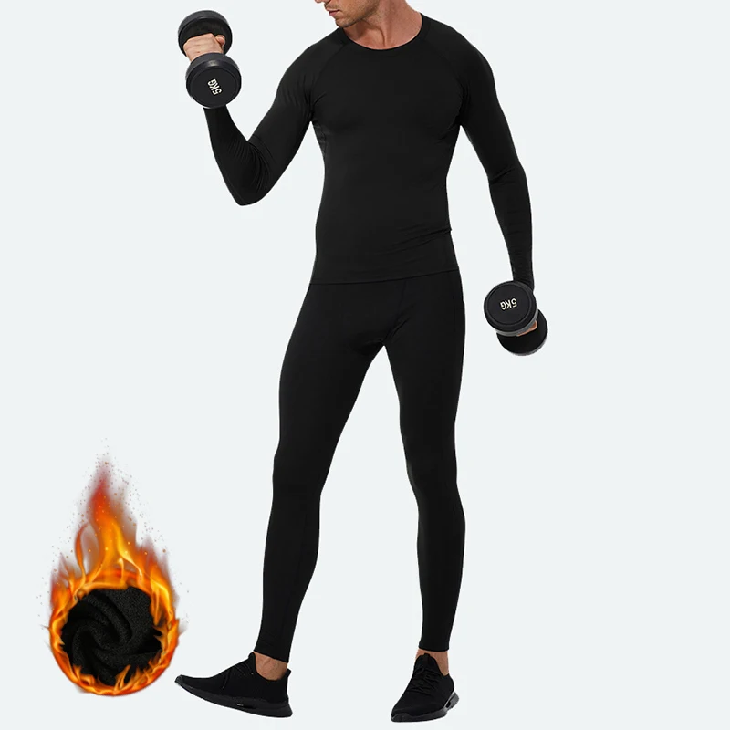 Men Gym Clothing Thermal Underwear Mens Velvet Tracksuit Jogging Training Suits Winter Sportswear Running Sports Set Sweatsuit