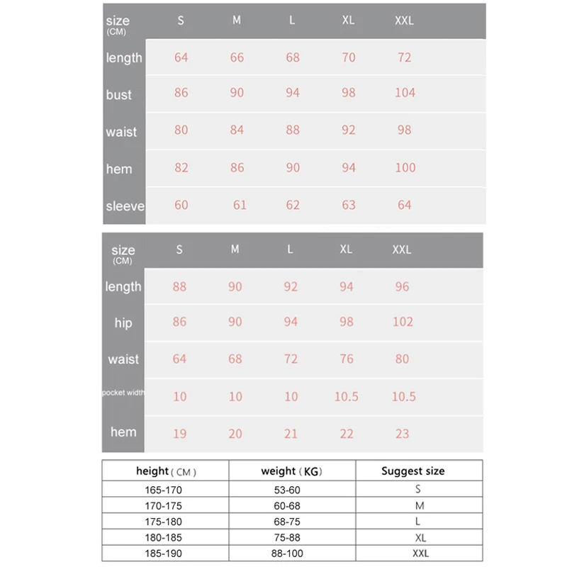 L =Waist 72 cm ,Hip 94 cm, Length 92cm,Hem 21 cm , For Weight 68-75kg Height 175-180cm;