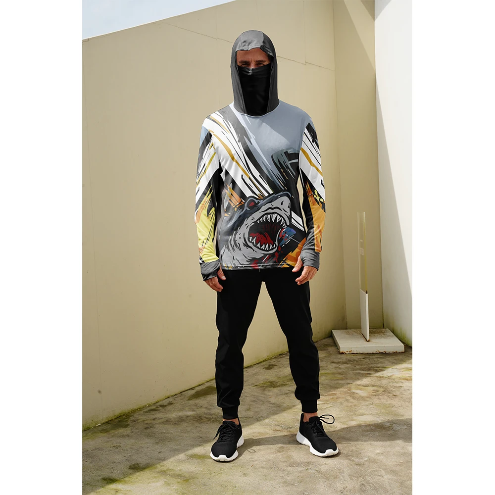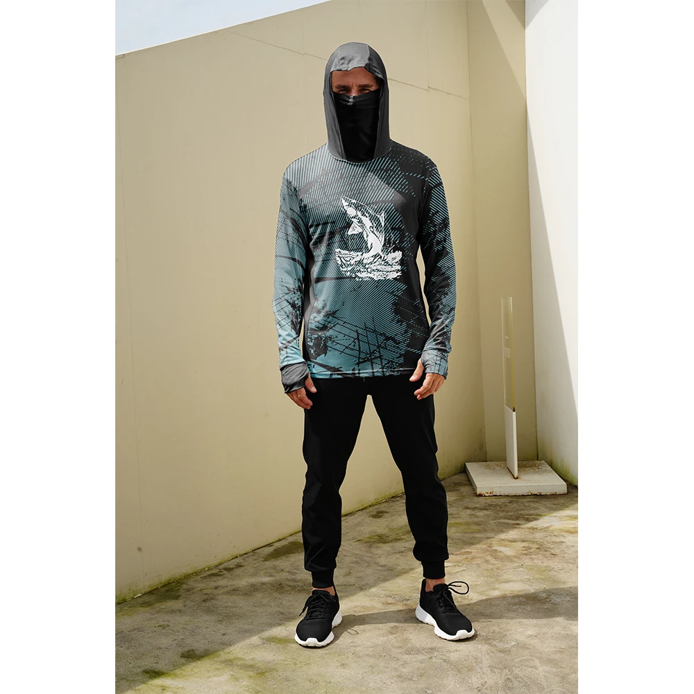 Men Hood Fishing Shirt Mask long sleeve clothing t shirt uv protection Outdoor leisure Fishing Apparel