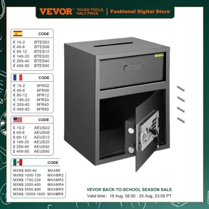 VEVOR Electronic Safe Deposit Box With Drop Slot Secret Hidden Piggy Bank Security Digital Access Two Keys for Store Money Guns $262.20 – $298.47