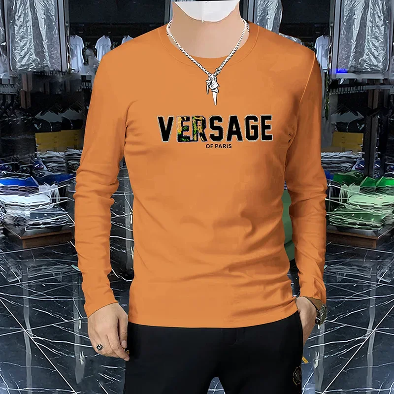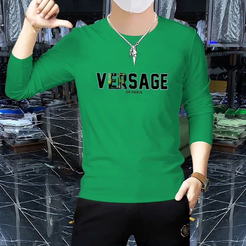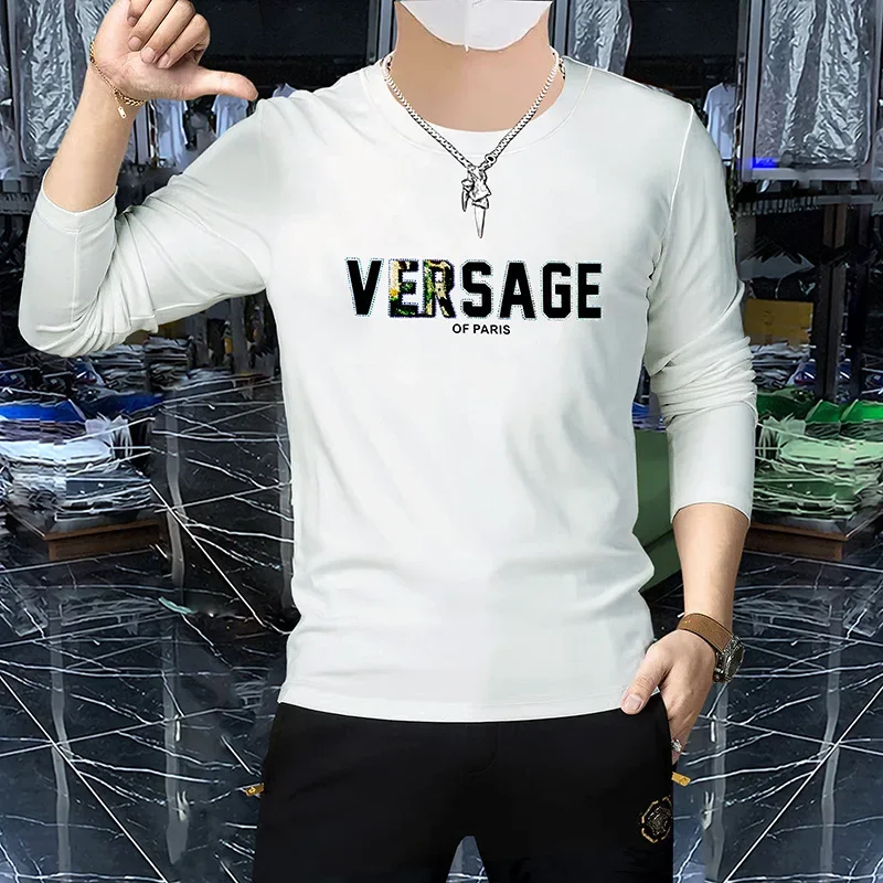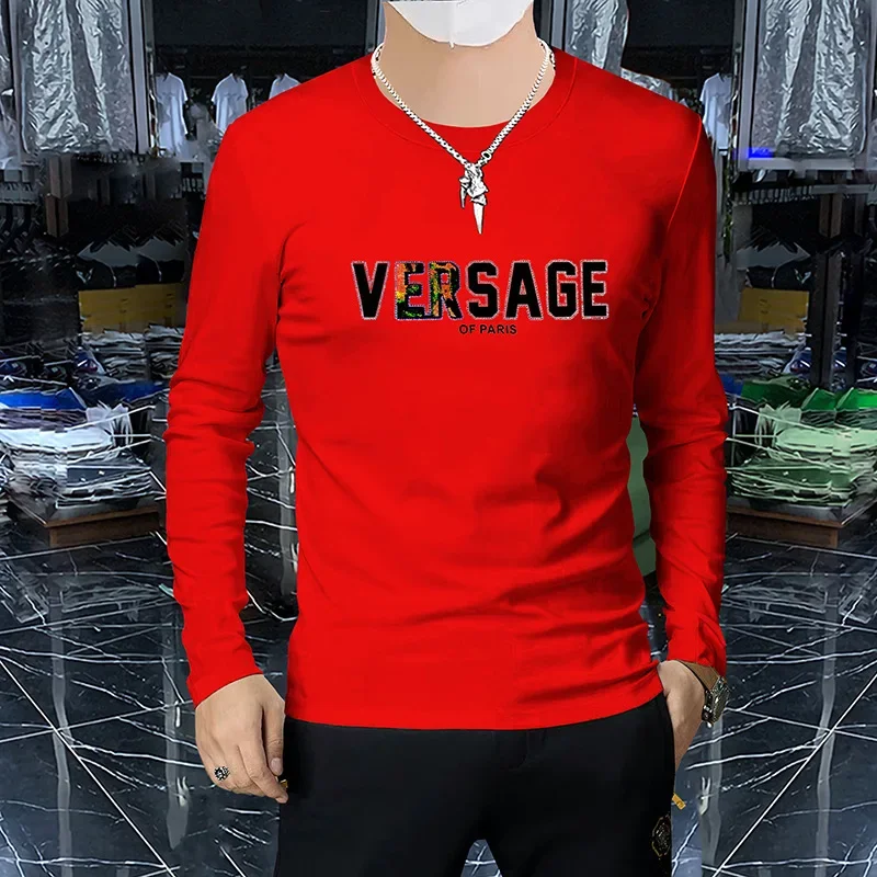 Men’s Luxury Long Sleeved T-shirt Spring Autumn New trendy 3D Letter Printed Hot Diamond Male Pullover High-quality Clothing 4xl