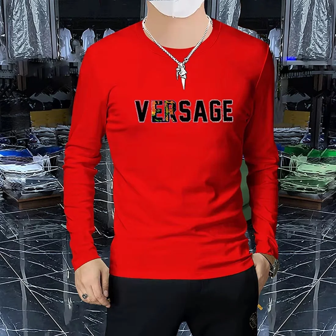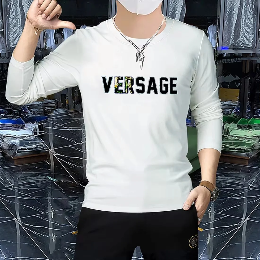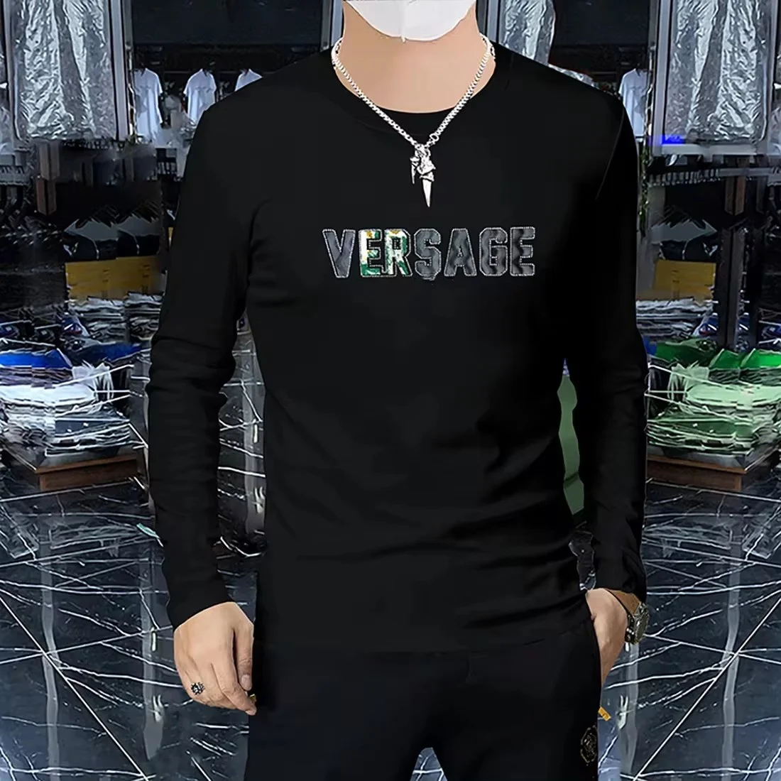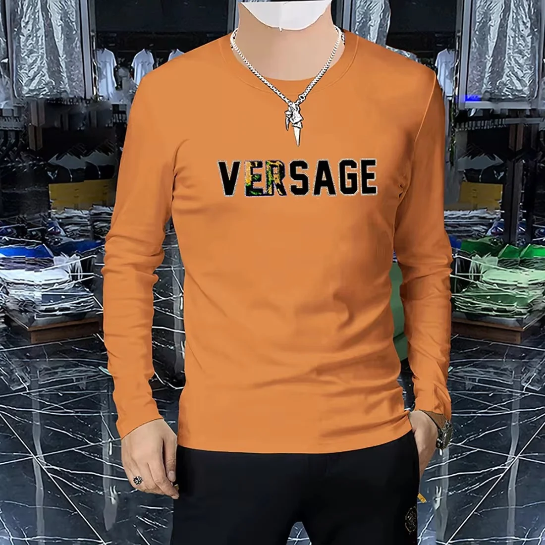 Home Store Fashion & Accessories Trendy clothing Men’s Luxury Long Sleeved T-shirt Spring Autumn New trendy 3D Letter Printed Hot Diamond Male Pullover High-quality Clothing 4xl