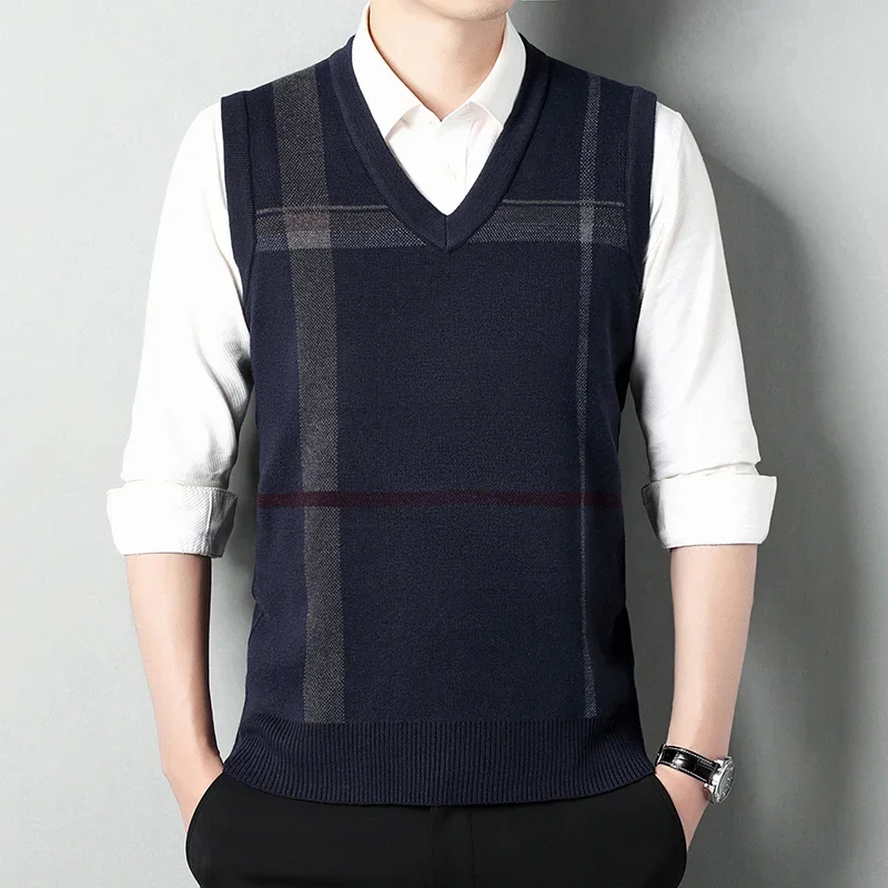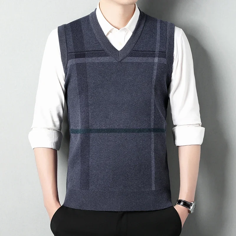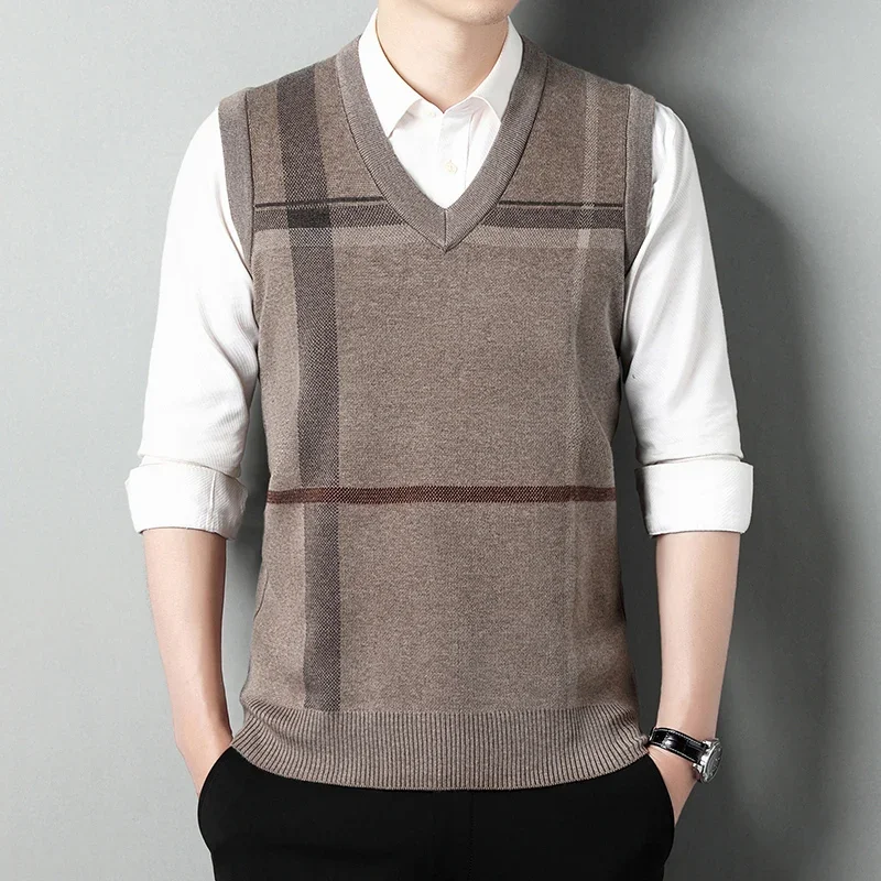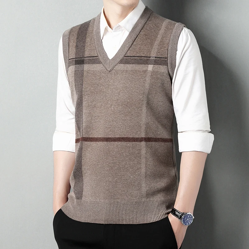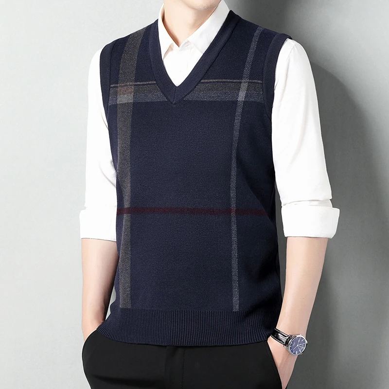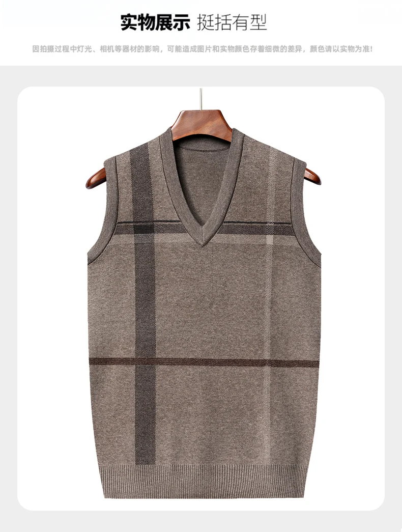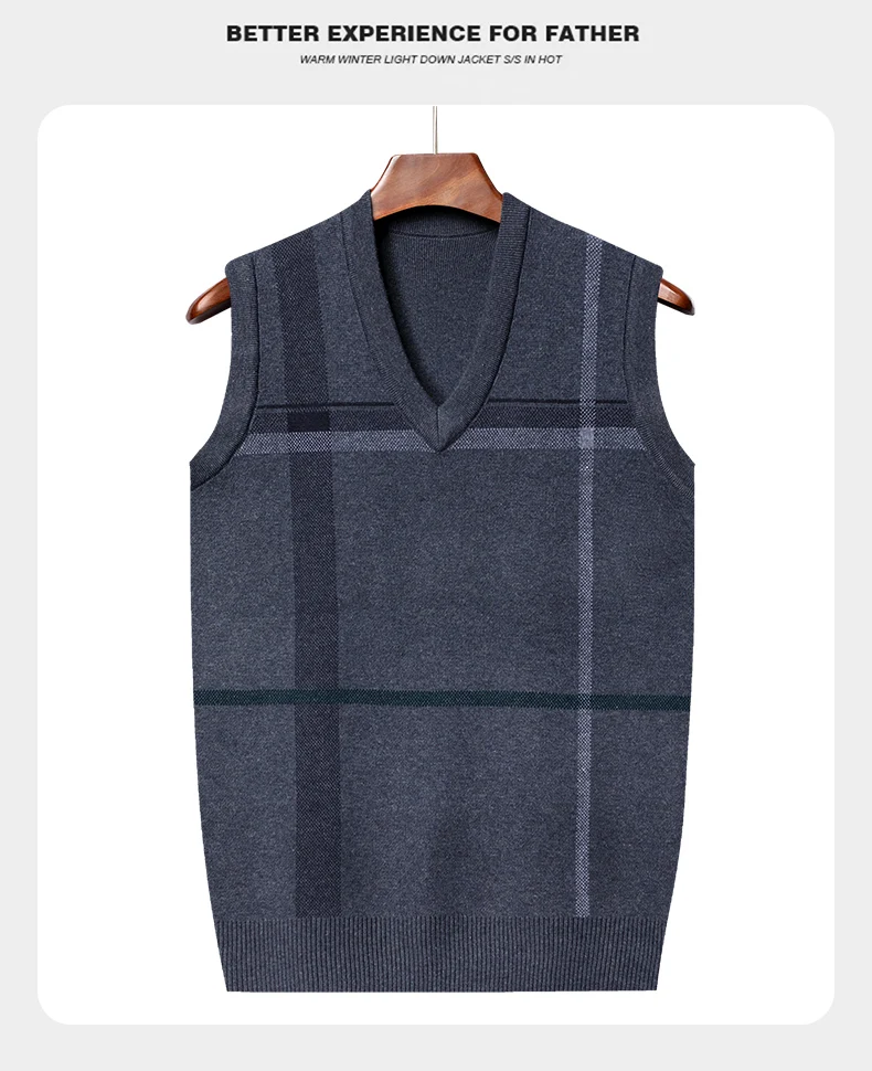 Men’s Thickened Casual Sweater Tank Top Autumn and Winter Warm Men’s V-neck Tank Top