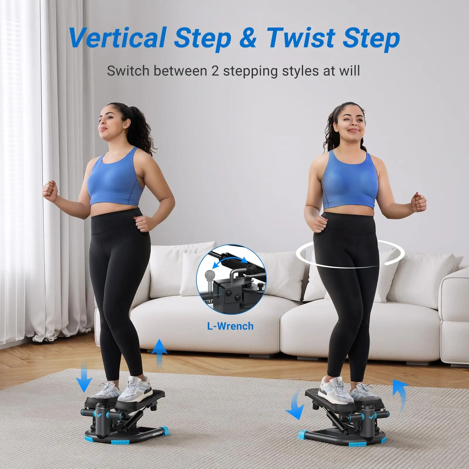 【 Dual-Action Stepping for Full Leg Workouts 】 Switch effortlessly between up-and-down and twisting stepping with a simple lever. This versatile design targets all leg muscles, providing a comprehensive workout.