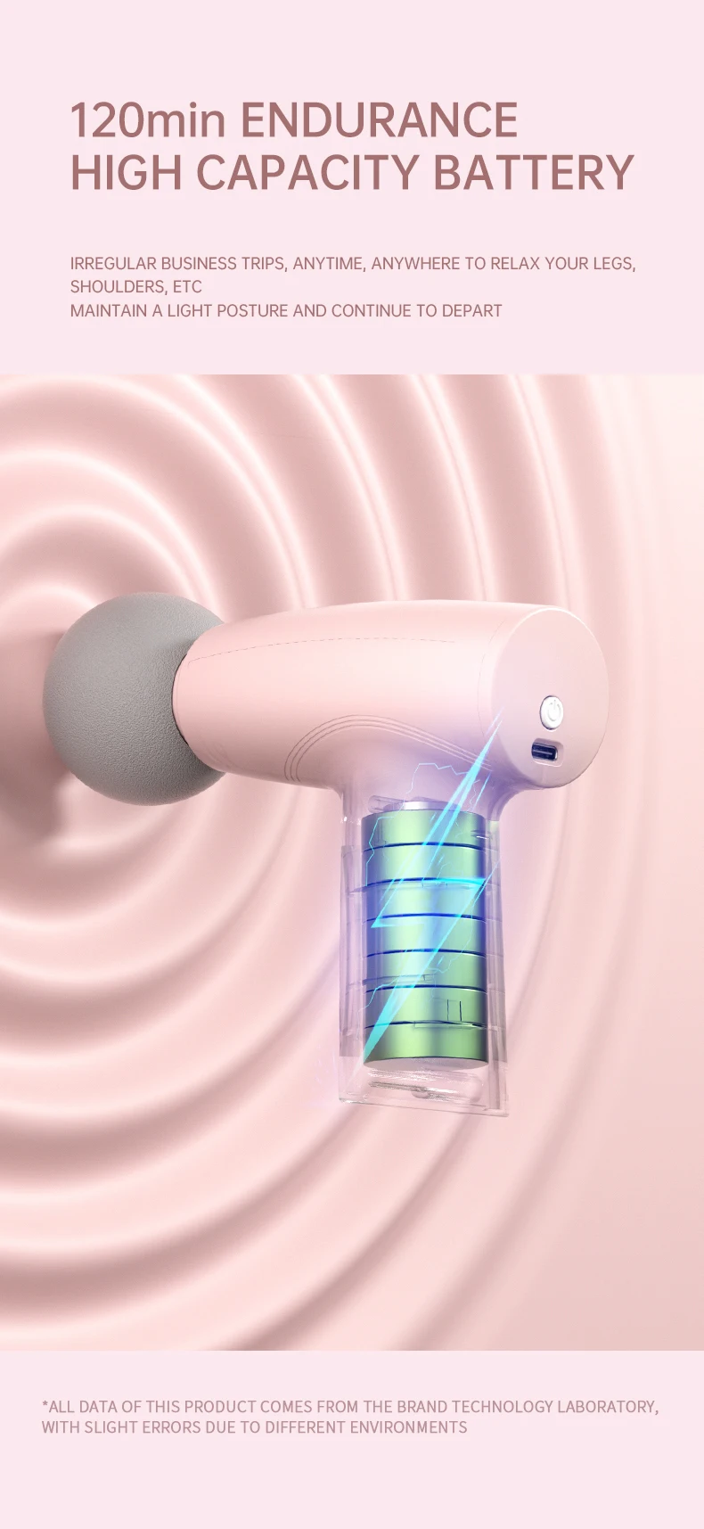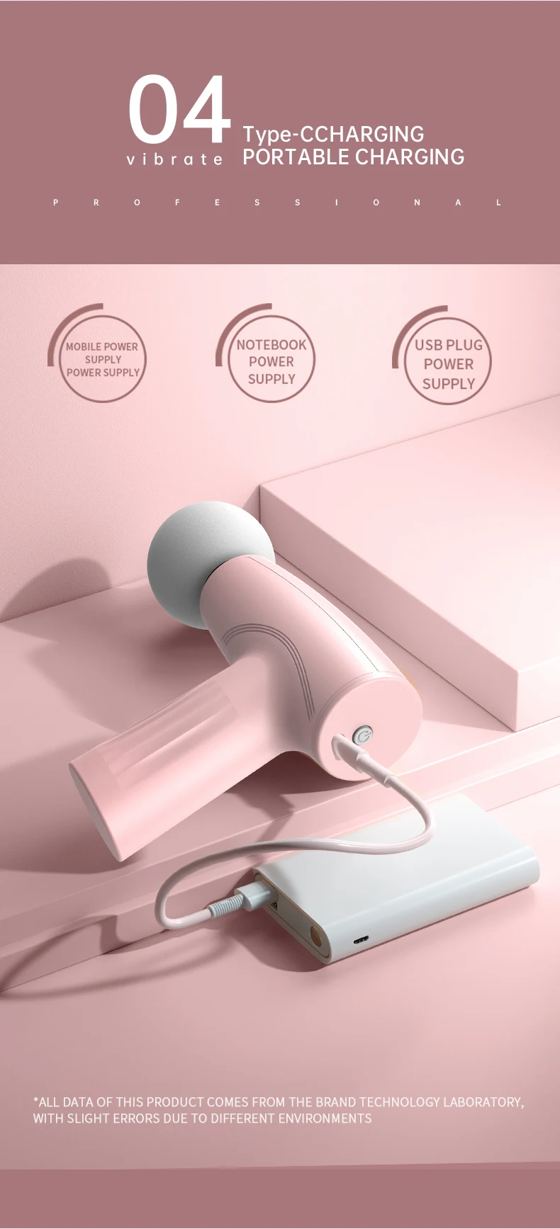This massage gun comes with a USB Type-C charging cable, which can be charged anytime, anywhere.
