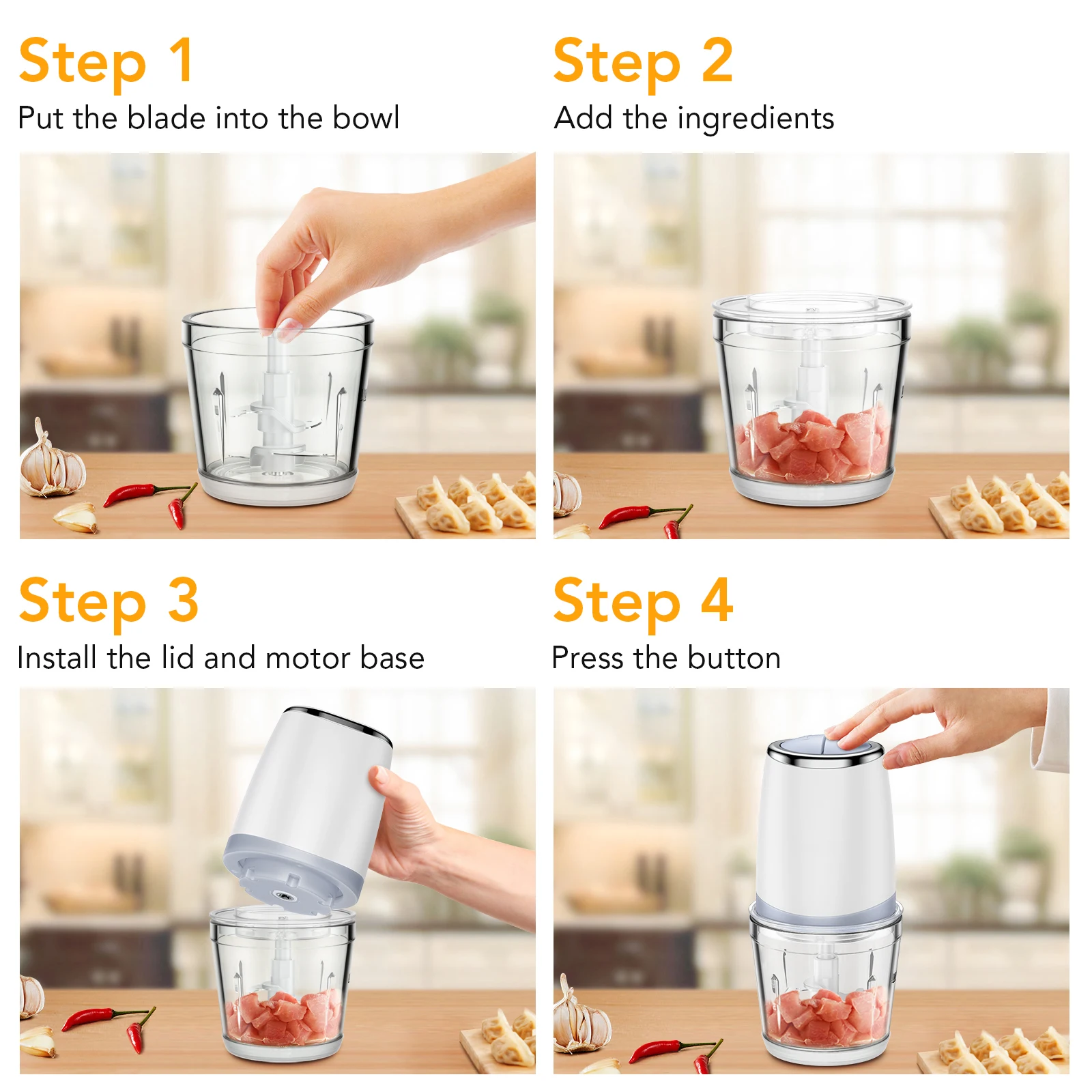 🍎Quality Assurance & Ideal Gift: This mini electric chopper can also be used as food blender and is a perfect kitchen gift idea for your family and friends. We are here to offer you only the best quality products designed to make your life easier. If you need any help, please feel free to contact us