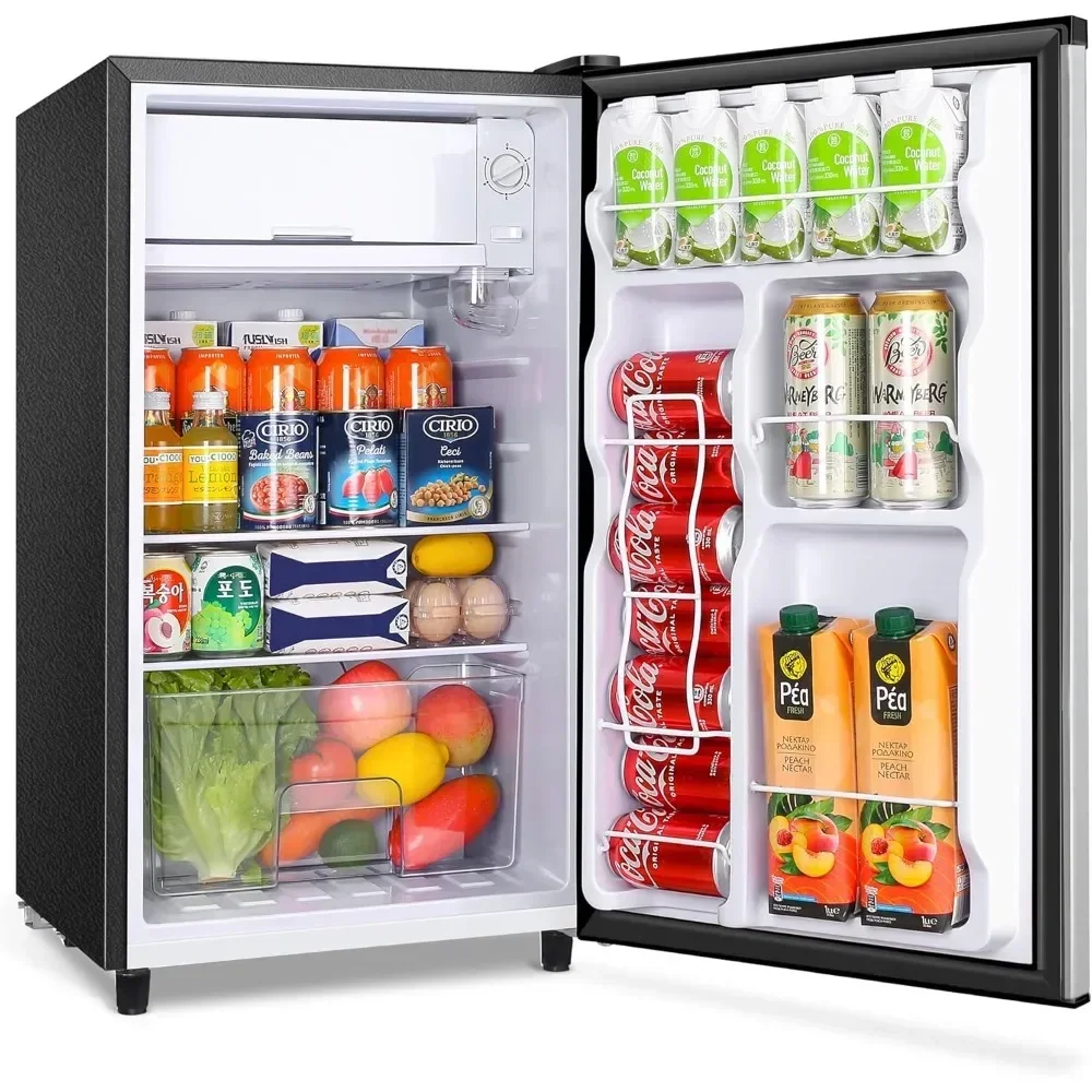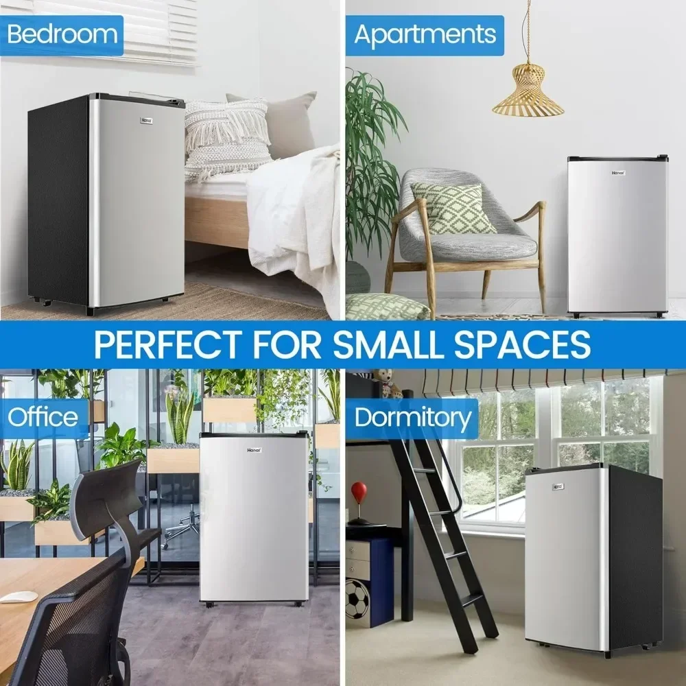 - 【Crisper Drawer & Removable Shelves】 Features a crisper drawer to keep your greens and fruits fresh and juicy. The small fridge storage space is adjustable to practical uses with removable shelves. Arrange these shelves how you see fit and you’d be amazed how much the small fridge can stores.