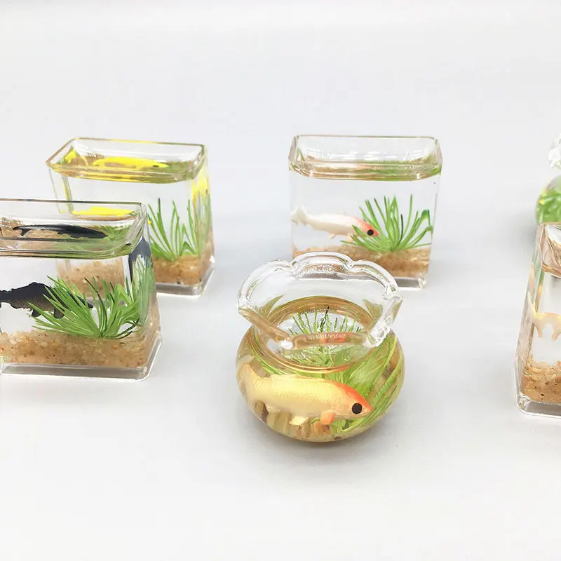 Miniature Glass Fish Tank Bowl Aquarium Scene Model Simulation Accessories Doll House Home Ornament Toy Decor Dollhouse