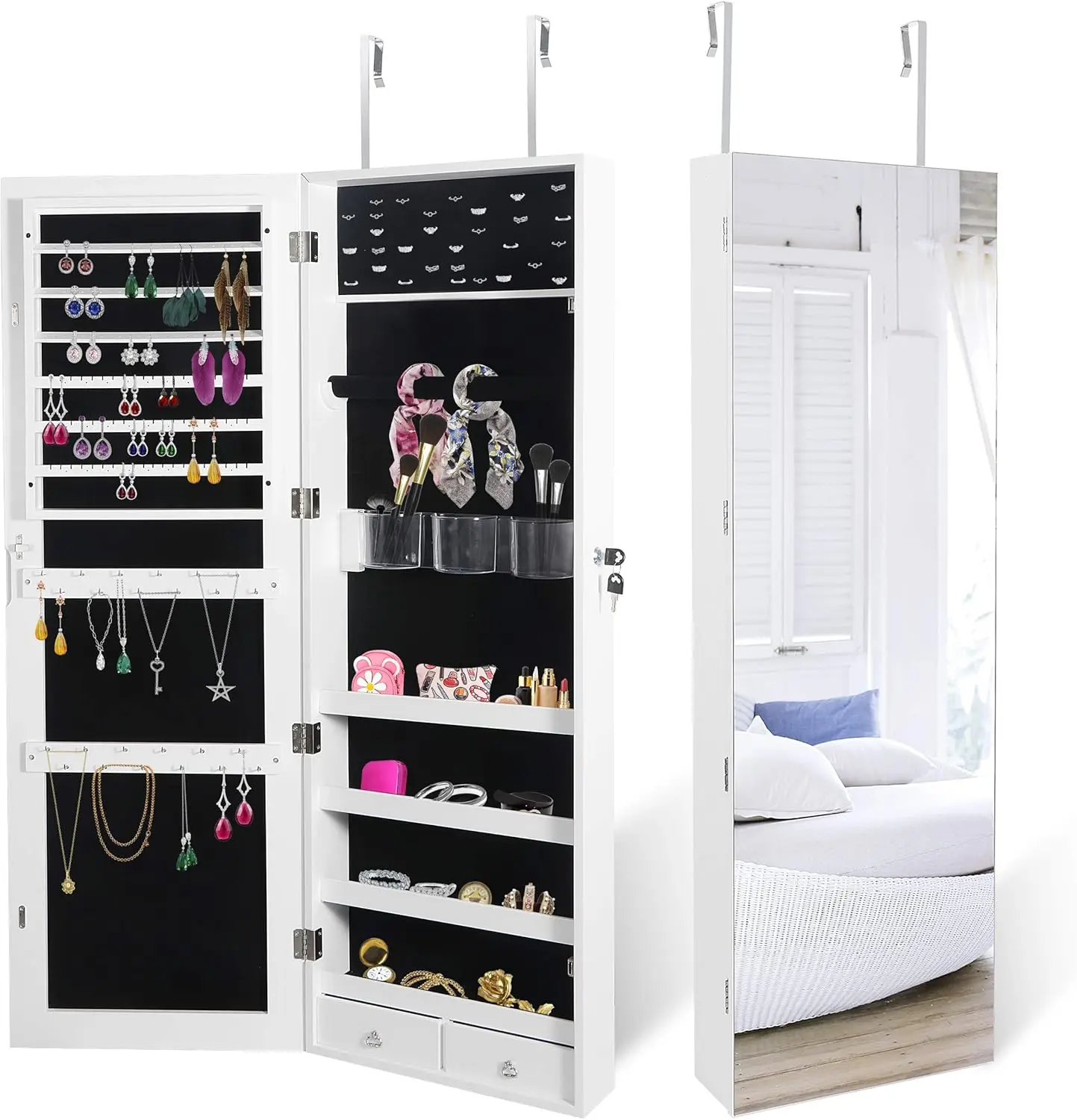 Mirror Jewelry Cabinet, Full Length Mirror with Jewelry Storage, Lockable Makeup Organizer Wall Door Mounted