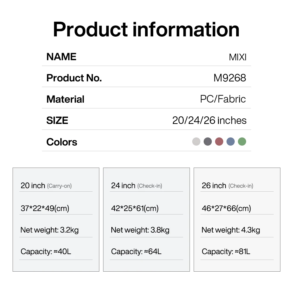 Mixi Carry On Luggage 20” Suitcase Hardside Rolling Luggage Women Travel 24”26”Suitcases 100% PC Spinner Wheels TSA Lock