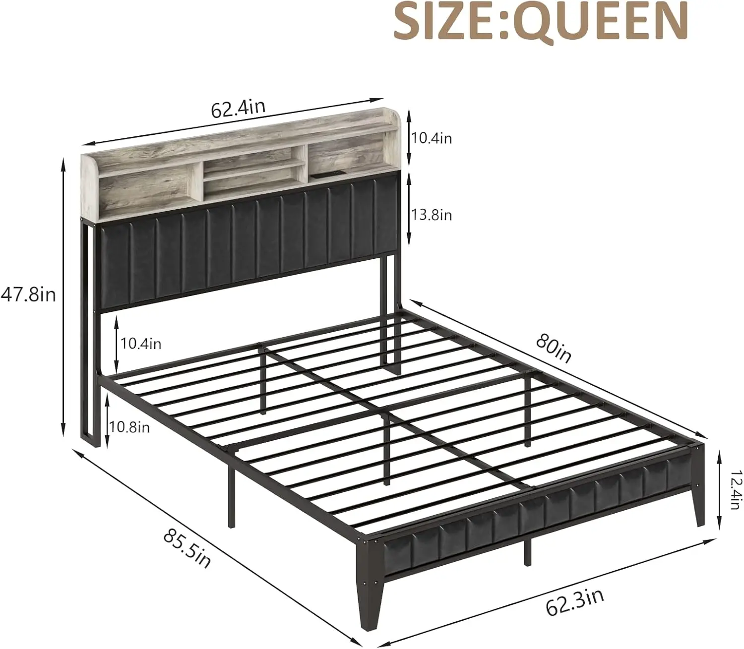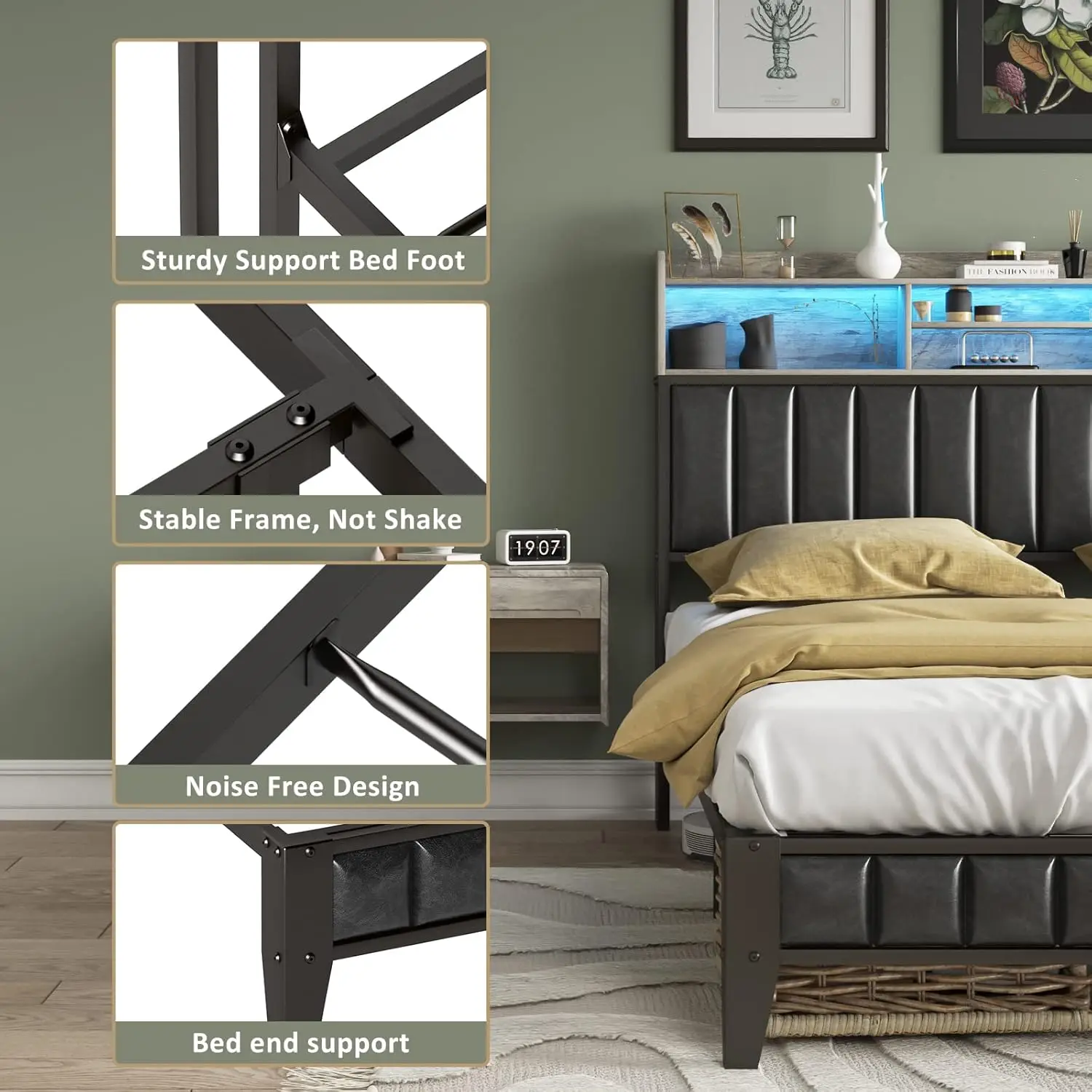 This is a bed frame with lights, charging station and tall storage headboard. It has two colors and two sizes, Brown and Grey, Full and Queen. Durable and noiseless, with the upholstered. It has the storage of 2-3 layers headboard and under bed, easy to store items.