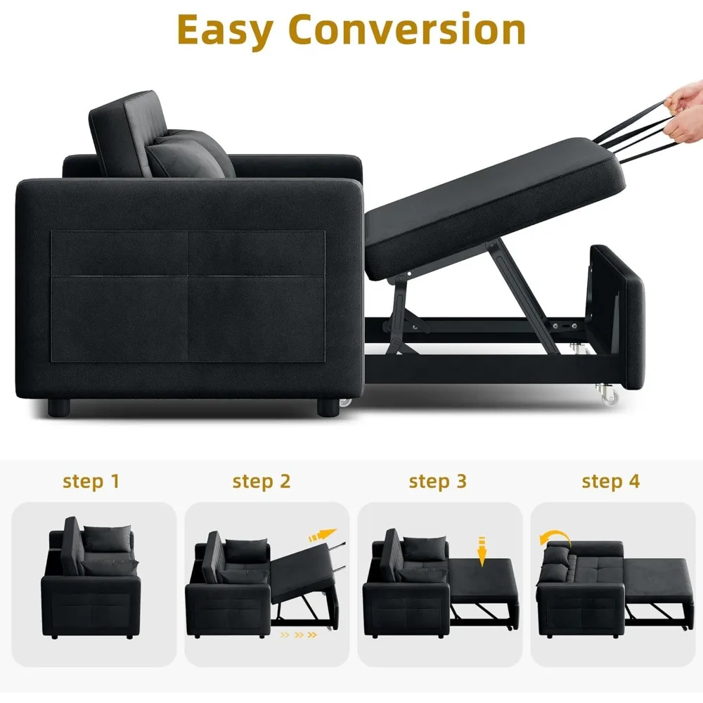 • Comfy additions: Upholstered in skin-friendly soft velvet fabric, this loveseat offers a luxurious touch. It includes 2 pillows that serve as back support in sofa mode and headrests in bed mode, offering ample comfort for your back and neck.