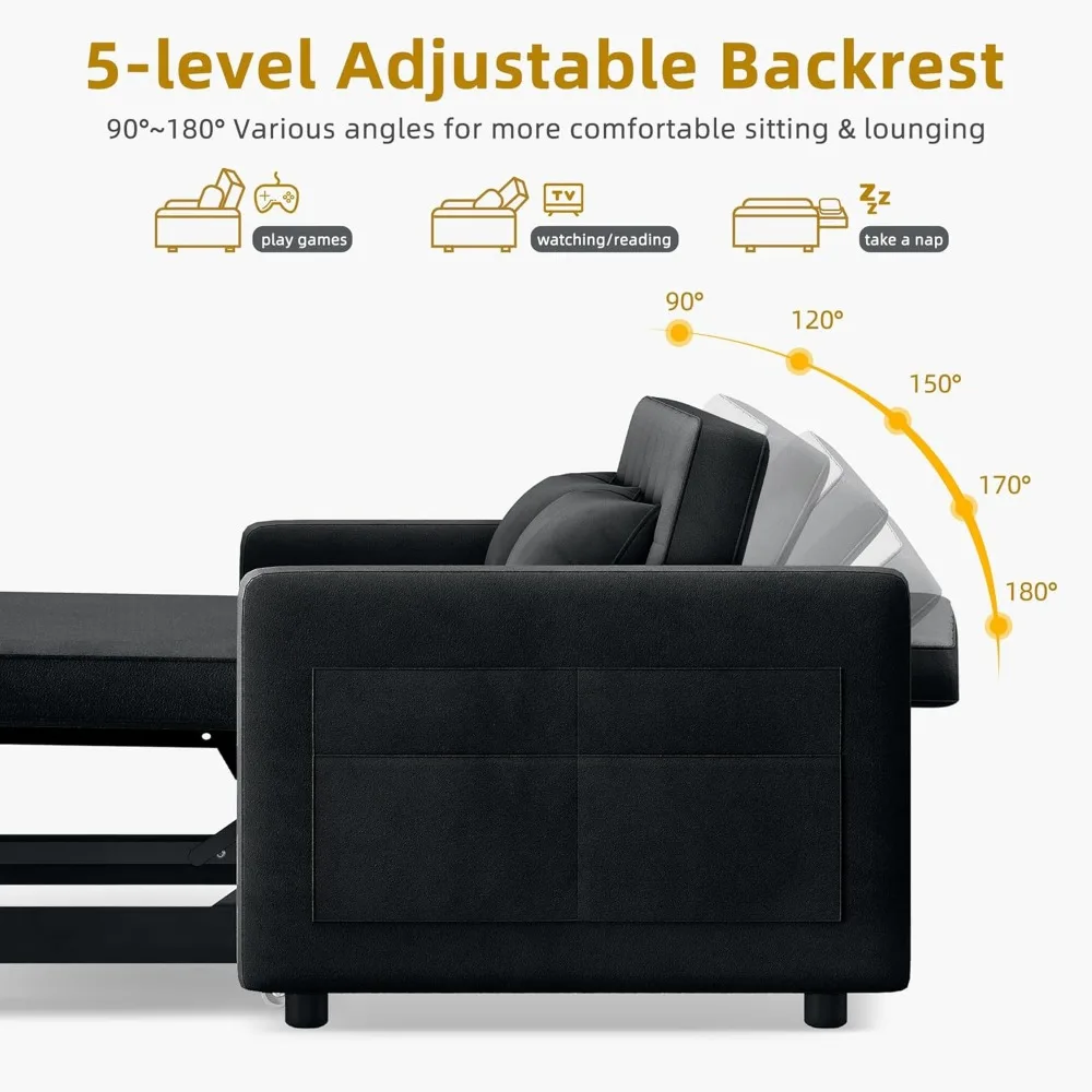 • 5-level backrest adjustment: Embark on a comfort journey with our  pullout couch, offering 5 reclining angles of 90°-120°-150°-170°-180°. Adjust the angle to meet your ultimate relaxation needs.