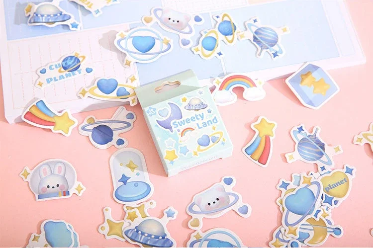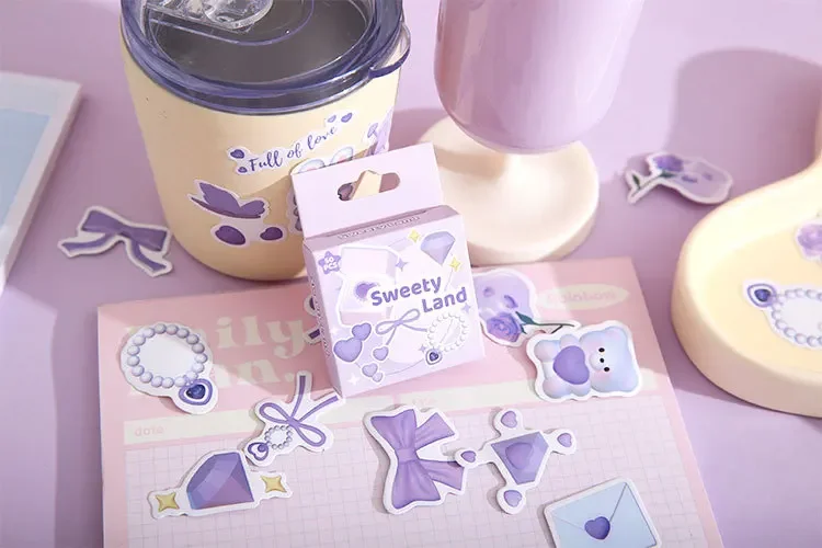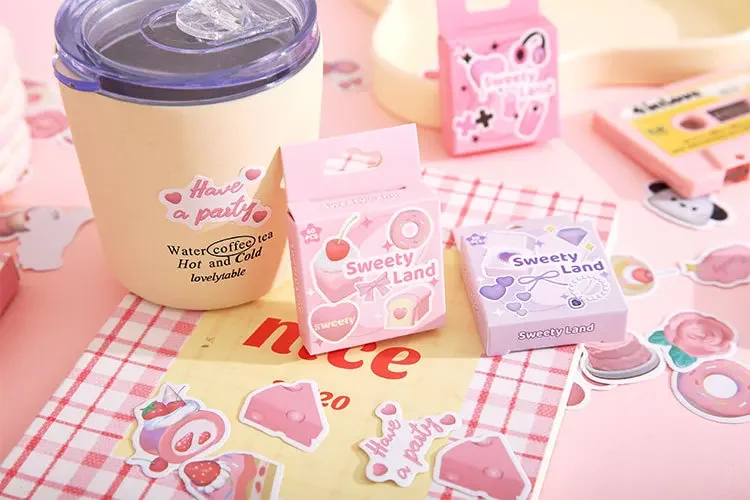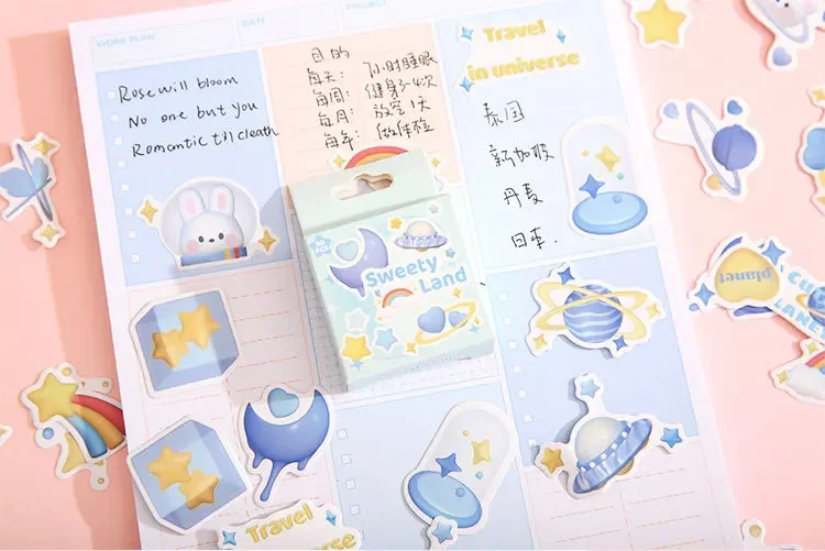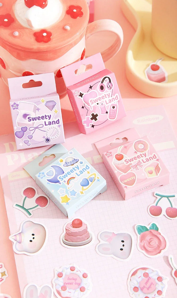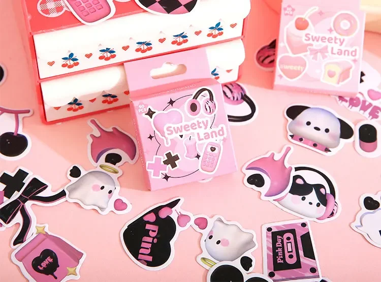 Mr. Paper 50pcs/box Kawaii Box Sticker DIY 3D Decoration Handbook Material Sealing Sticker Cute Stationery Supplies