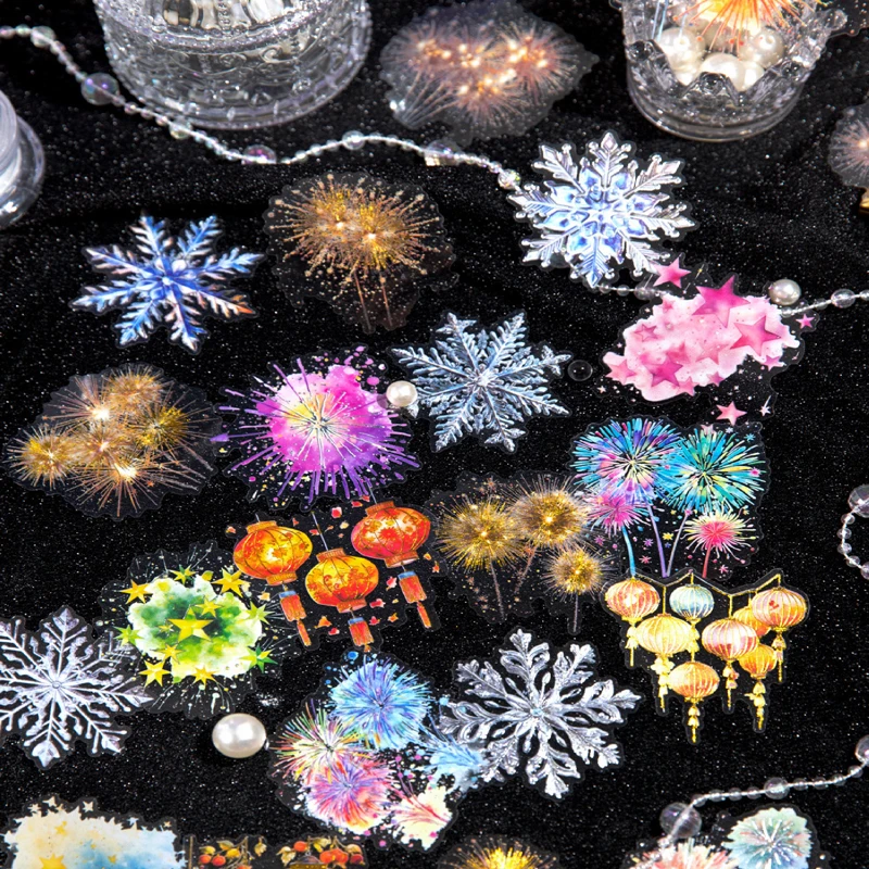 Home Store Household Essentials Paper products Mr. Paper, Sparkling Colorful Fireworks Snowflakes Red Lantern Stickers, Decorative Scrapbook Phone Case Stationery Stickers
