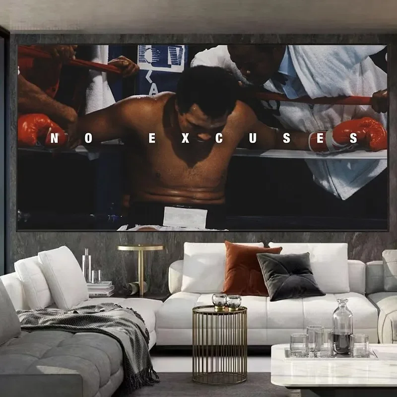 Muhammad Ali Motivational Quote Canvas Poster HD Boxing Wall Art No Excuses Gym Decor Home Fitness Inspiration Sports Poster Wa