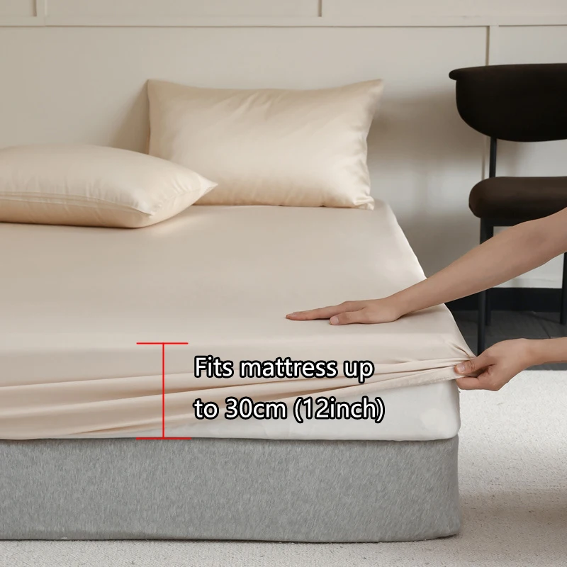 Pure color simple bed sheet, fixed by an elastic band, easy to install and replace.