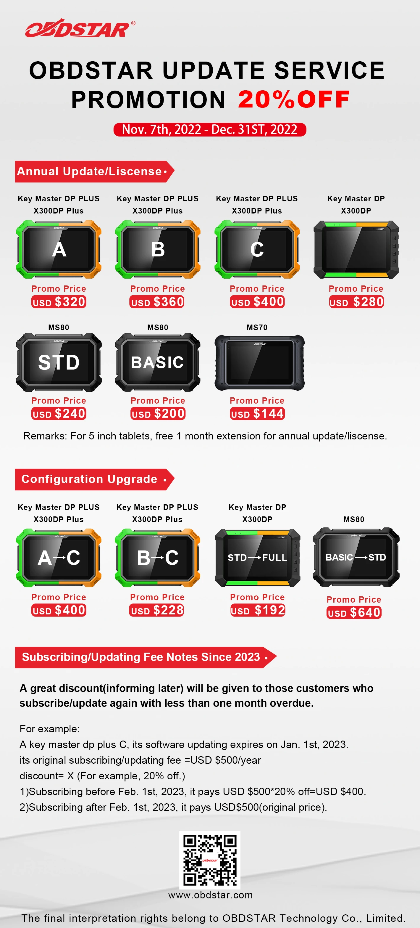 OBDSTAR MS70 MS80 Motorcycle Scanner One Year Update Service (Subscription Only)