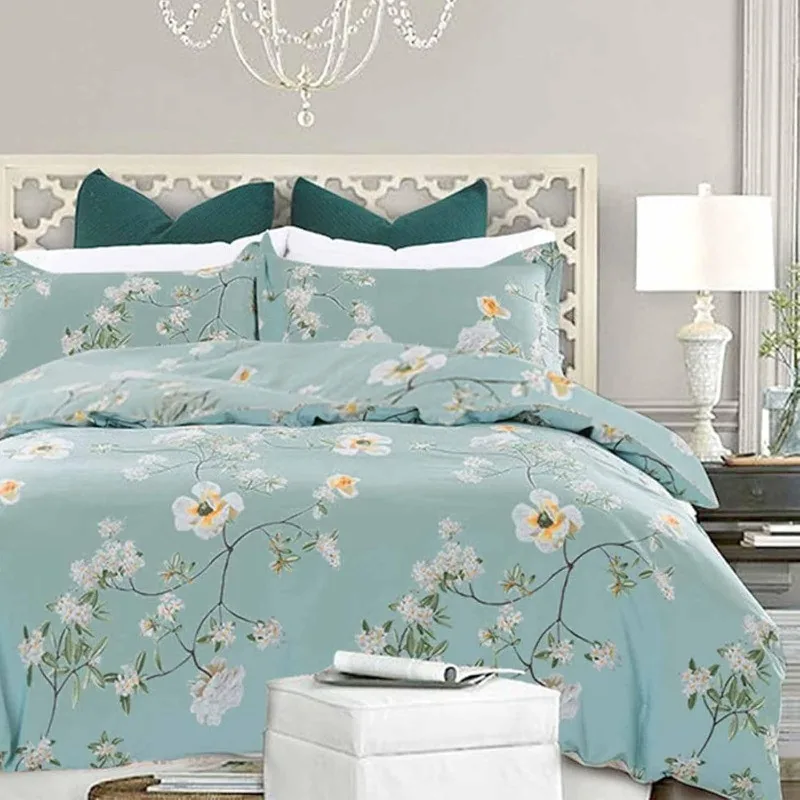 - 【Soft and Cozy】Made from 100% premium washed microfiber, the teal Floral Print Pattern duvet cover allows you to enjoy ultimate softness and is comfortable, breathable and lightweight for all season use, cooling in Spring and Summer and warm in Fall and Winter. It’s a good gift choice for families and friends.
