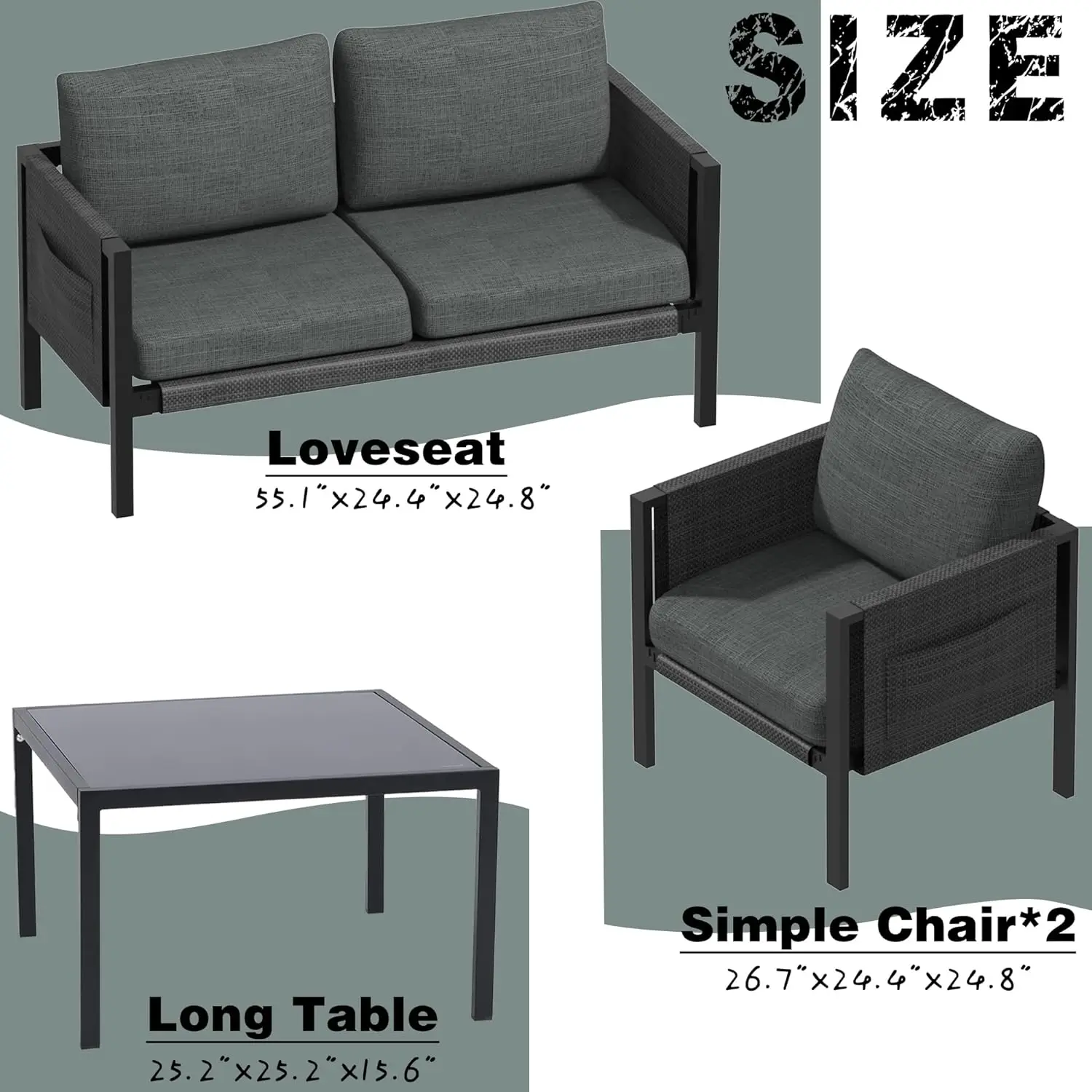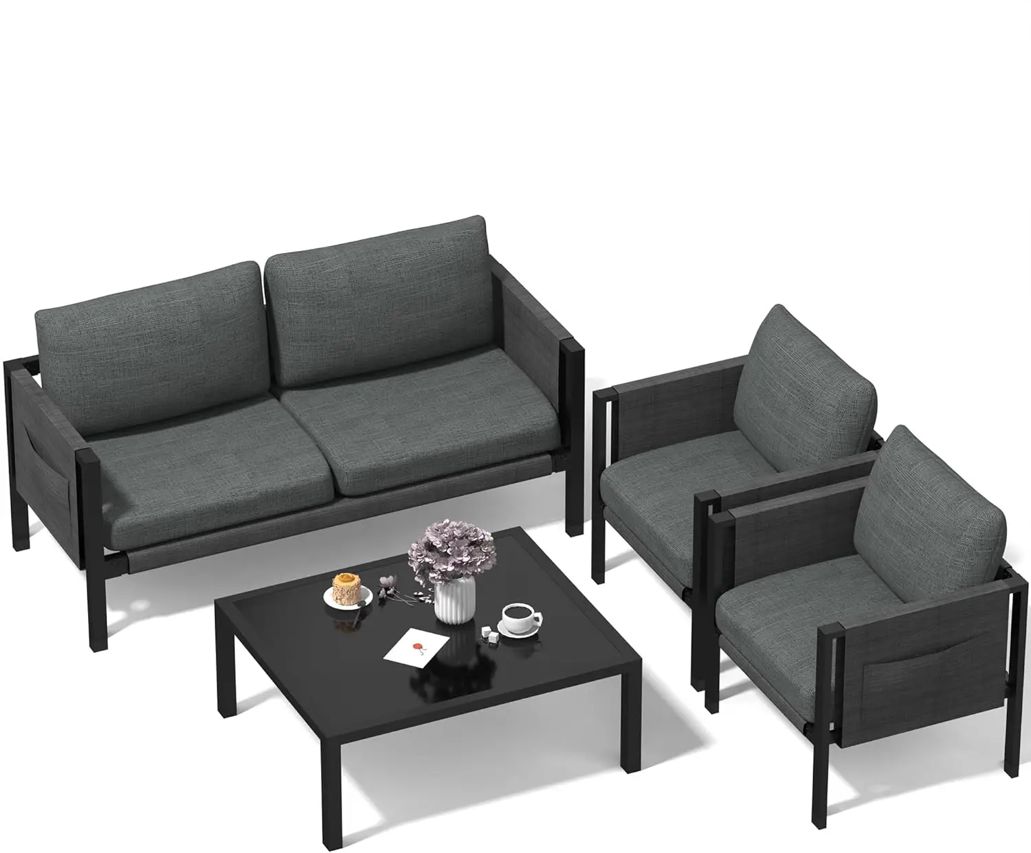 • 🌷Quick and Easy Assembly: Our 4-piece outdoor aluminum patio set comes with a detailed instruction manual, installation tools, and accessories, making assembly a breeze. The lightweight design ensures easy movement and setup.