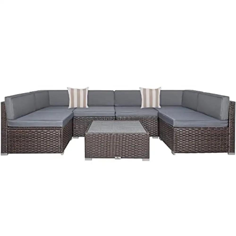 Experience comfort with our outdoor sectional furniture. Each chair includes seat and back cushions, and two pillows are included for optimal support. Maintenance is easy with removable, washable cushion covers.