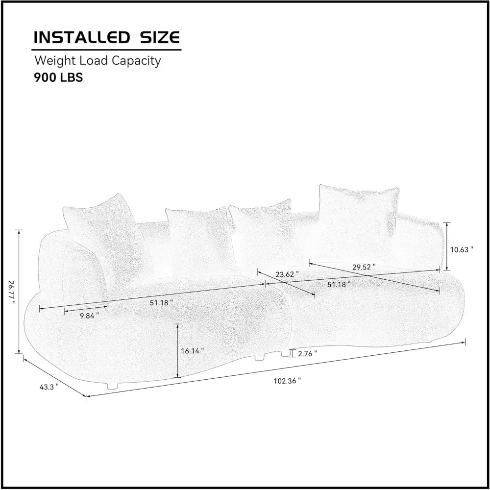 Oversized Curved Sofa Couch,Boucle Fabric Lounge Cloud Sofa& Couch with 4 Pillows for Apartment,House Living Room Furniture
