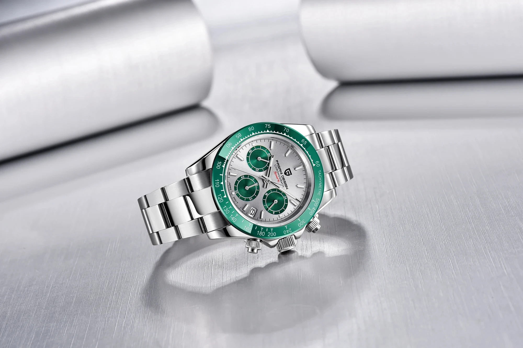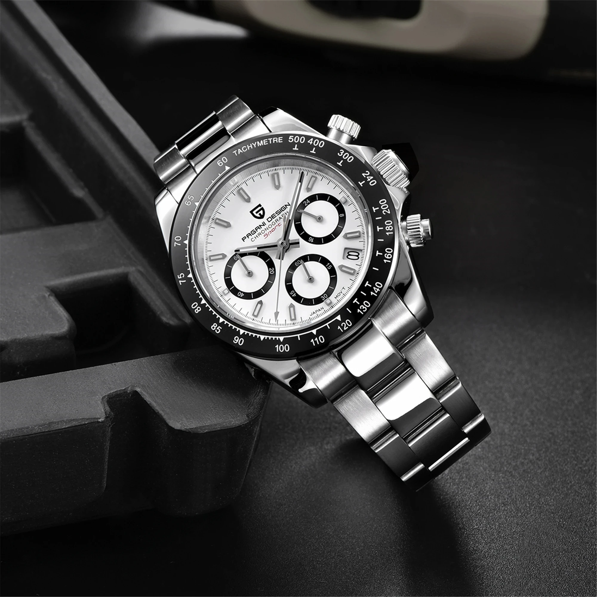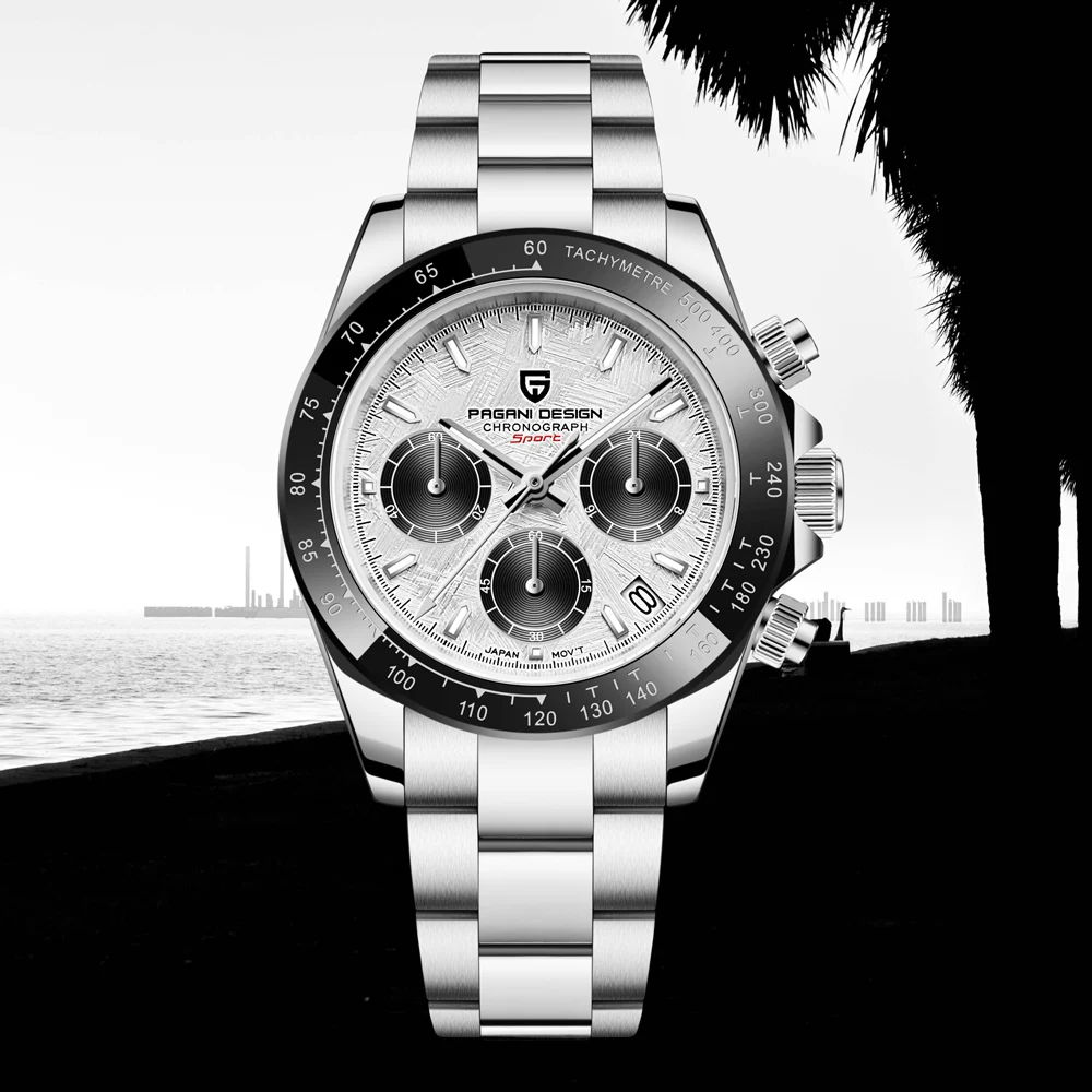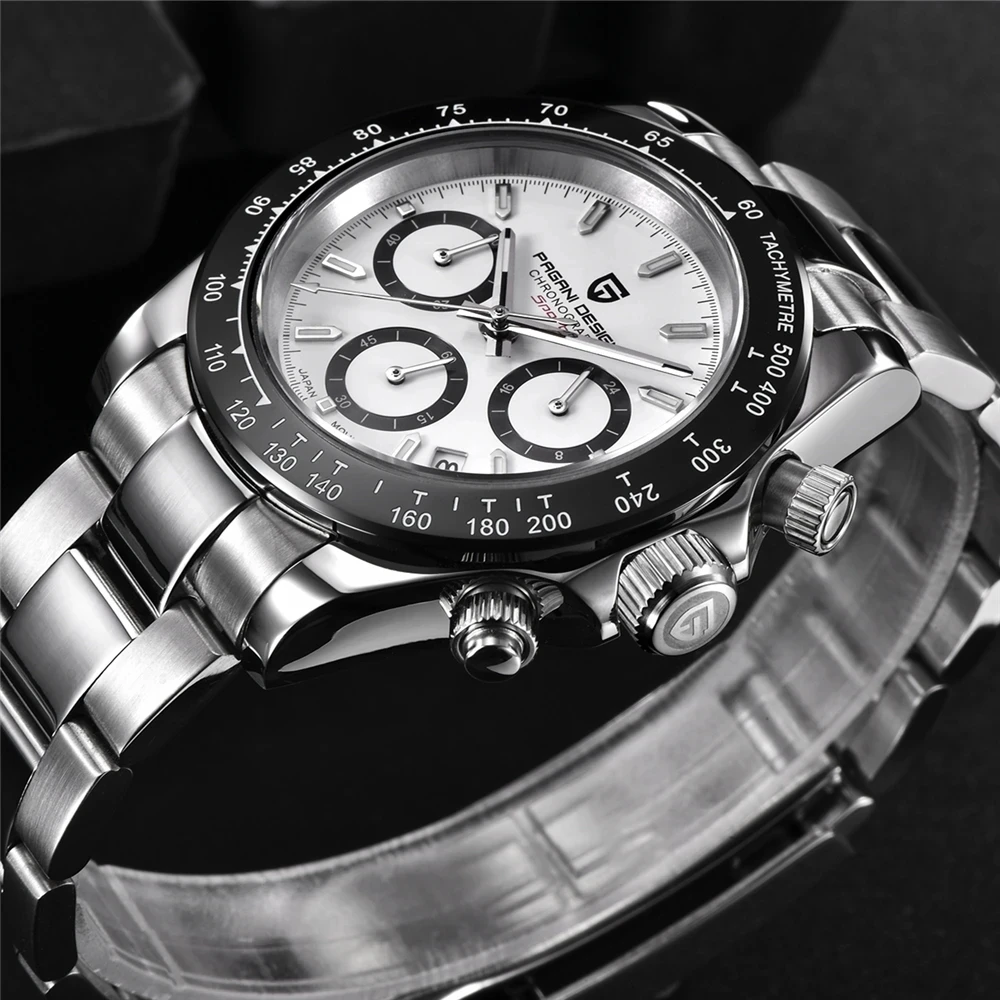 PAGANI DESIGN Top Luxury Brand Men Watches 100M Waterproof Quartz Wristwatch Sport Chronograph AR Sapphire mirror VK63 All Steel