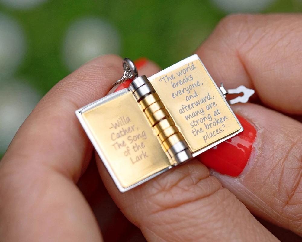 Home Books and Media Personalized Favourite Quotes to Live By Engraved Book Necklace Engraved Text For You and Your Love