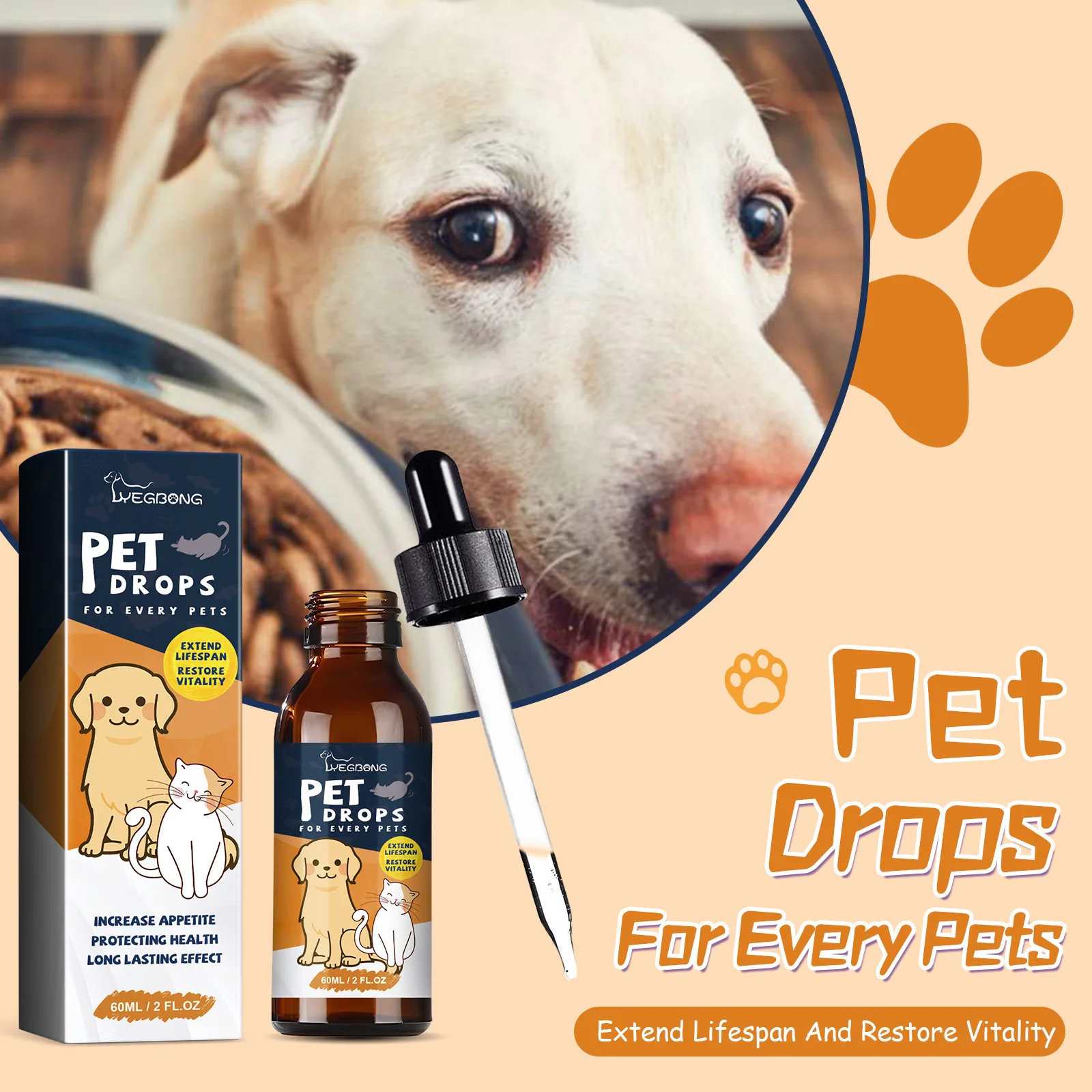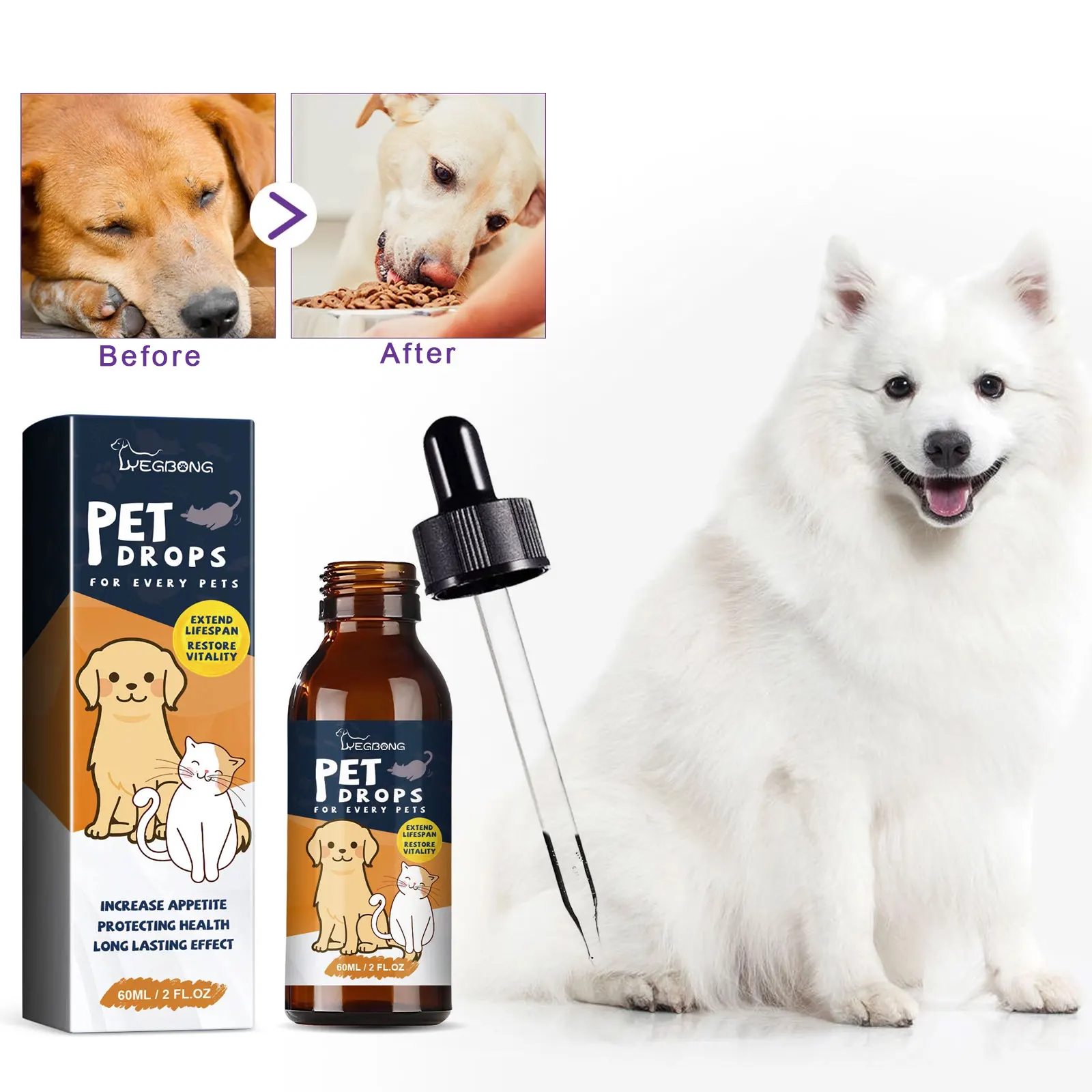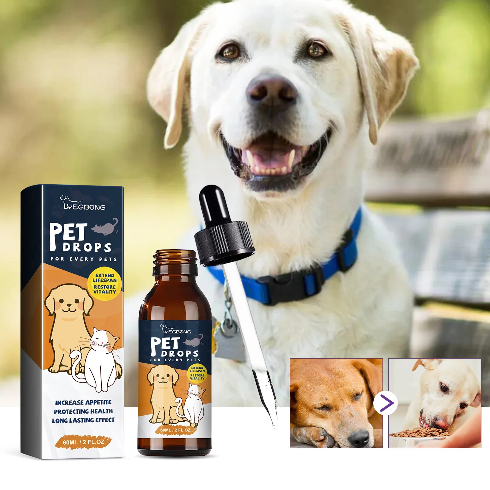 Yegbong Pet Nutrition Supplement Gastrointestinal Care Stomach Conditioning Improve Digestion Health Enhance Appetite Dog Health Drop