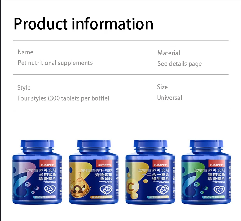 Pet nutritional supplements, care for joint chondroitin tablets, cats and dogs, universal deep-sea fish oil tablets, vitamin tab