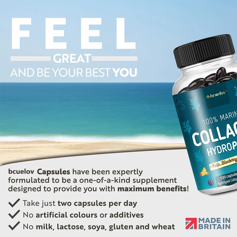 Home Store Vitamins and supplements Powerful Marine Collagen – With Hyaluronic Acid, Biotin & Blueberry – 1400mg Complex-Hydrolyzed Type 1-With Vitamins & Minerals