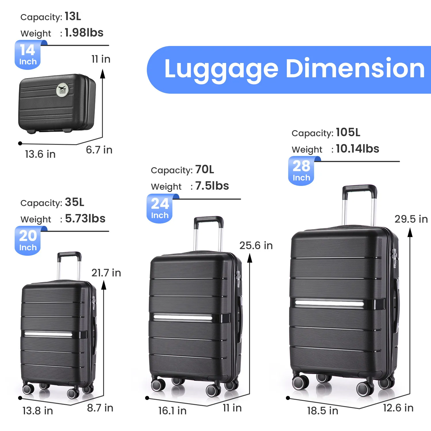 Premium Unisex Suitcase 4 Piece(14/20/24/28)Durable & Stylish Travel Companion with Lock ideal for Daily Use,Boarding,black