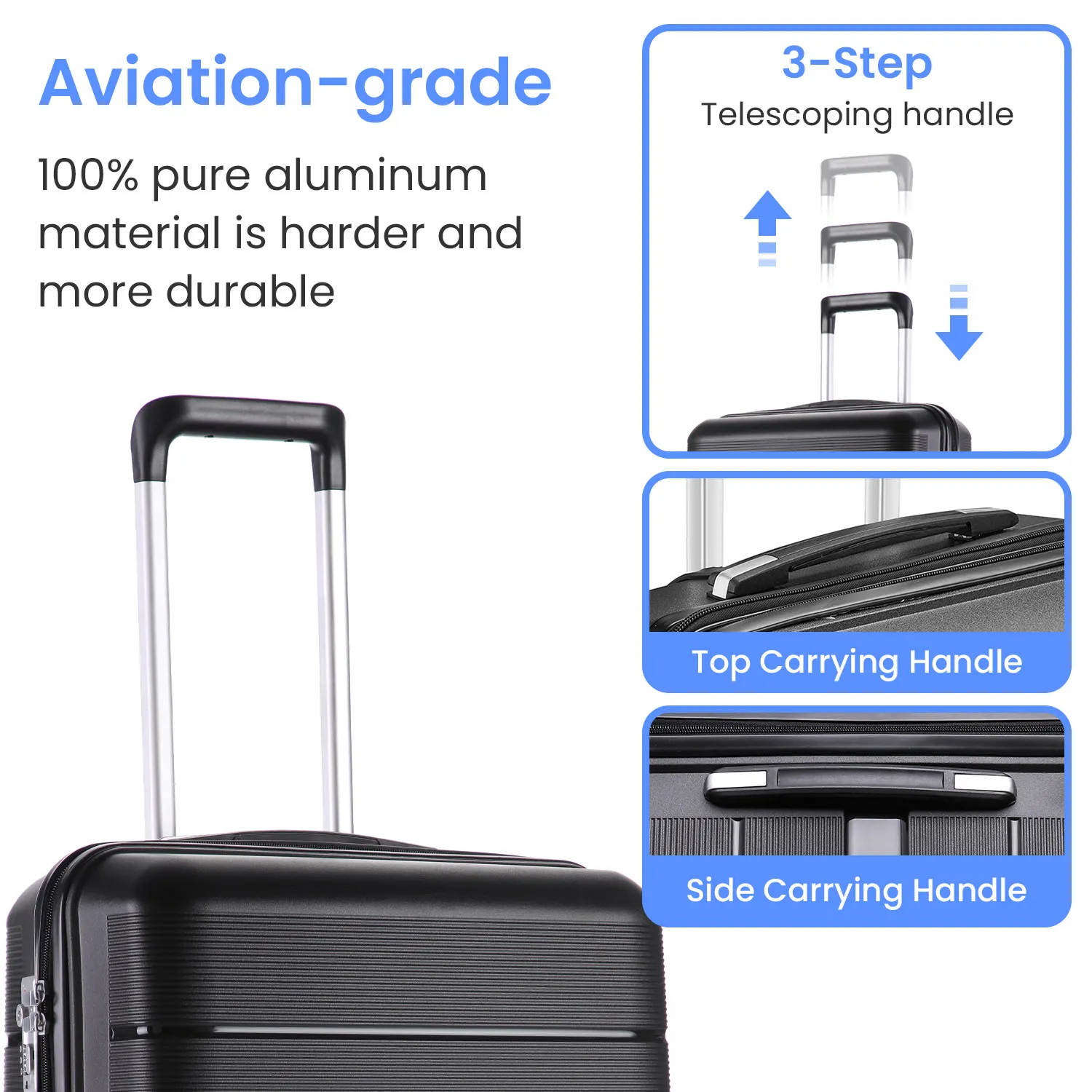 • Adjustable 3-level aluminum telescoping handle allows you to quickly maneuver in tight spaces and it's sturdier than most of the telescoping handle on the market. The top/side soft reinforced grip handles for easy carrying when in a hurry, or it can be really handy when lifting the suitcase with heavy weight.