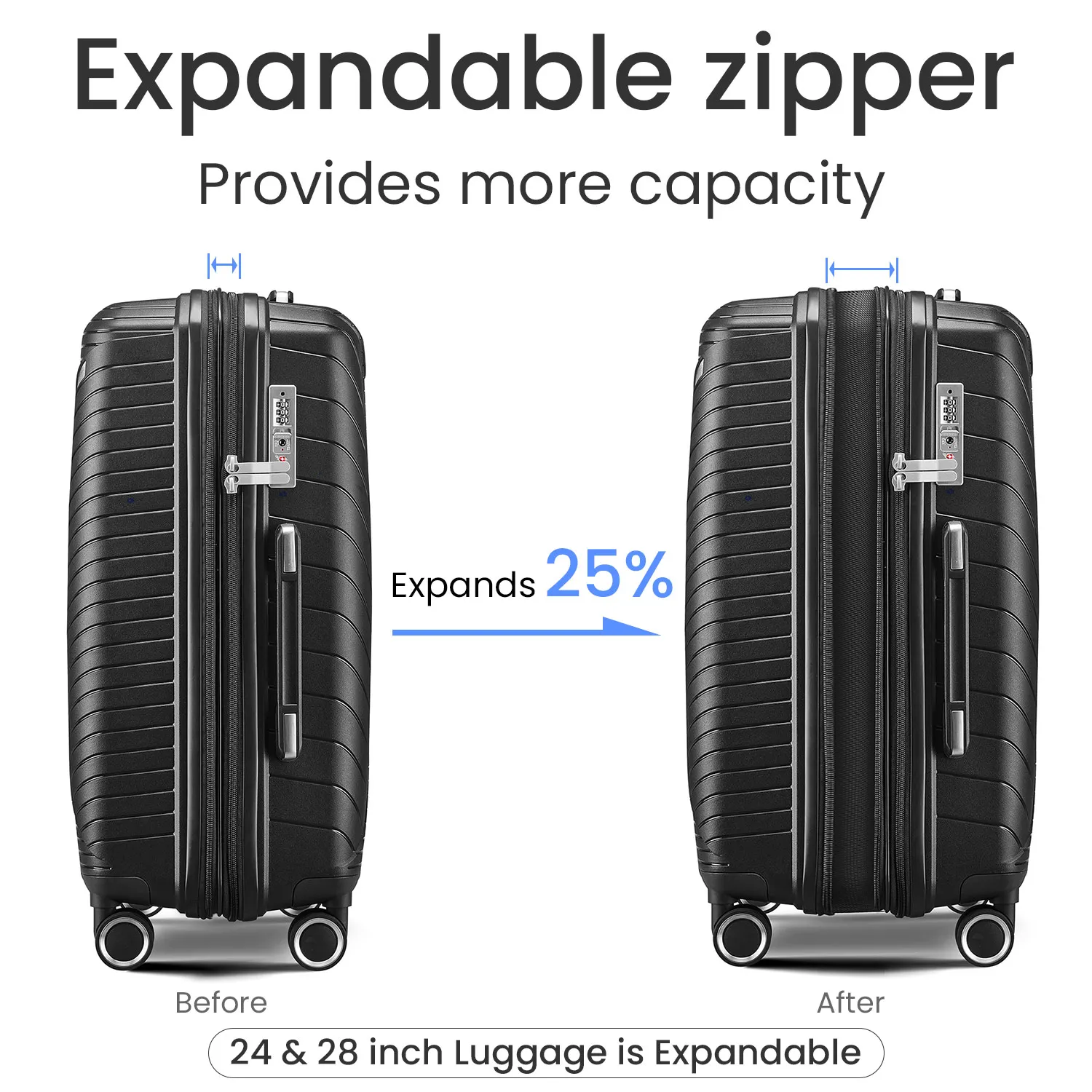 • Top quality luggage sets, PC material for hardshell, which makes the luggage more durable, lighter and impact-resistant. 21in is best for carry on, 29in expands 20% for more spaces.