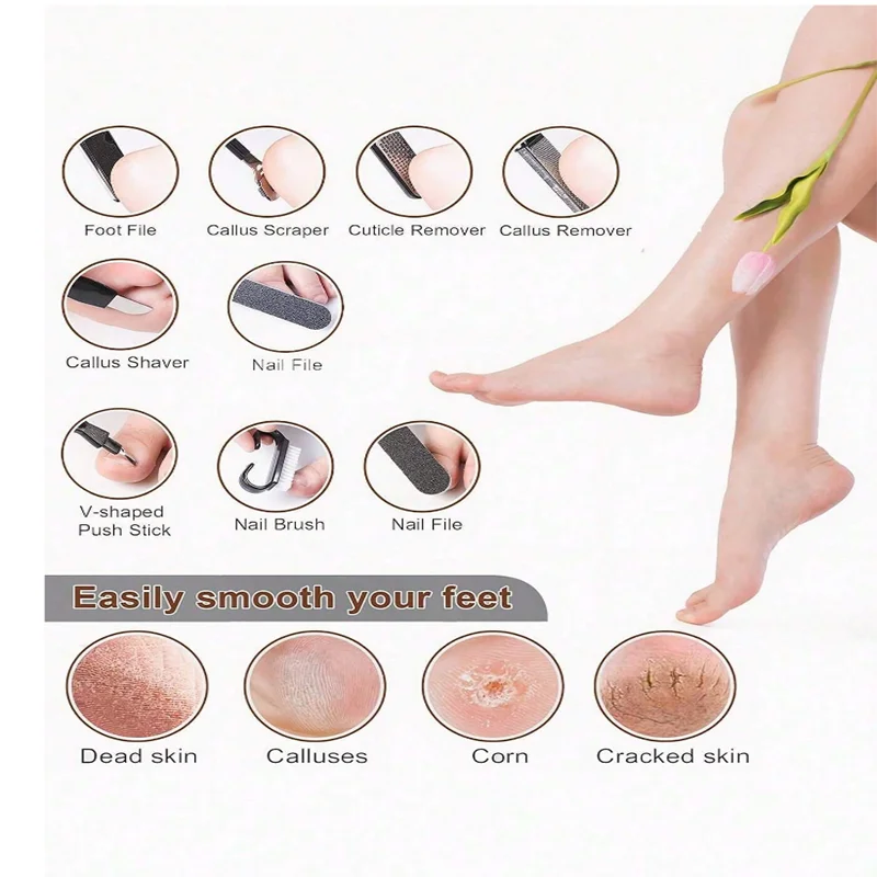 Professional pedicure foot spa set, foot pedicure set, stainless steel foot care set, foot file dead skin remover pedicure set